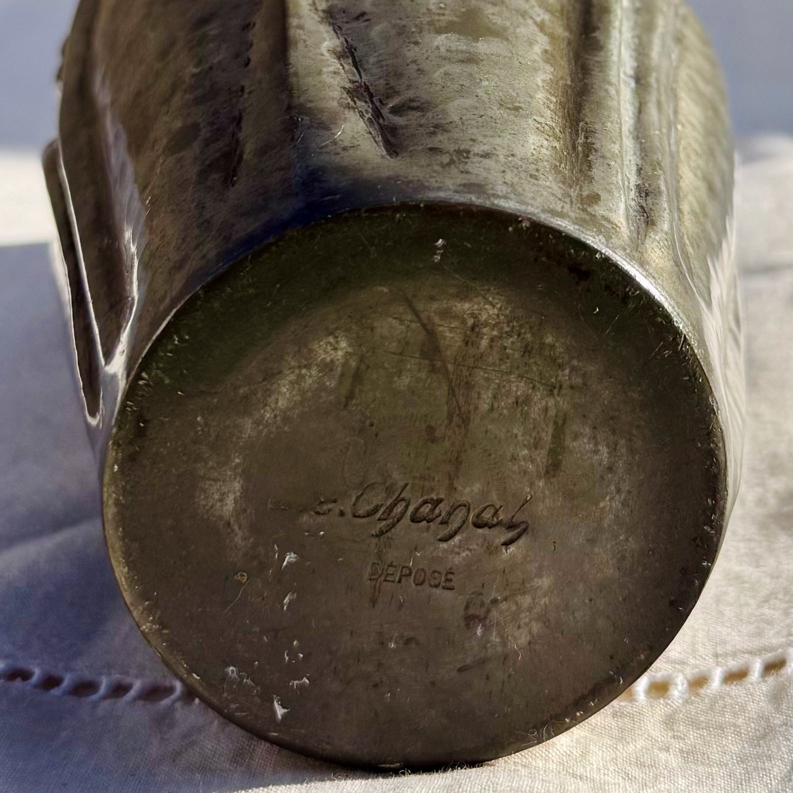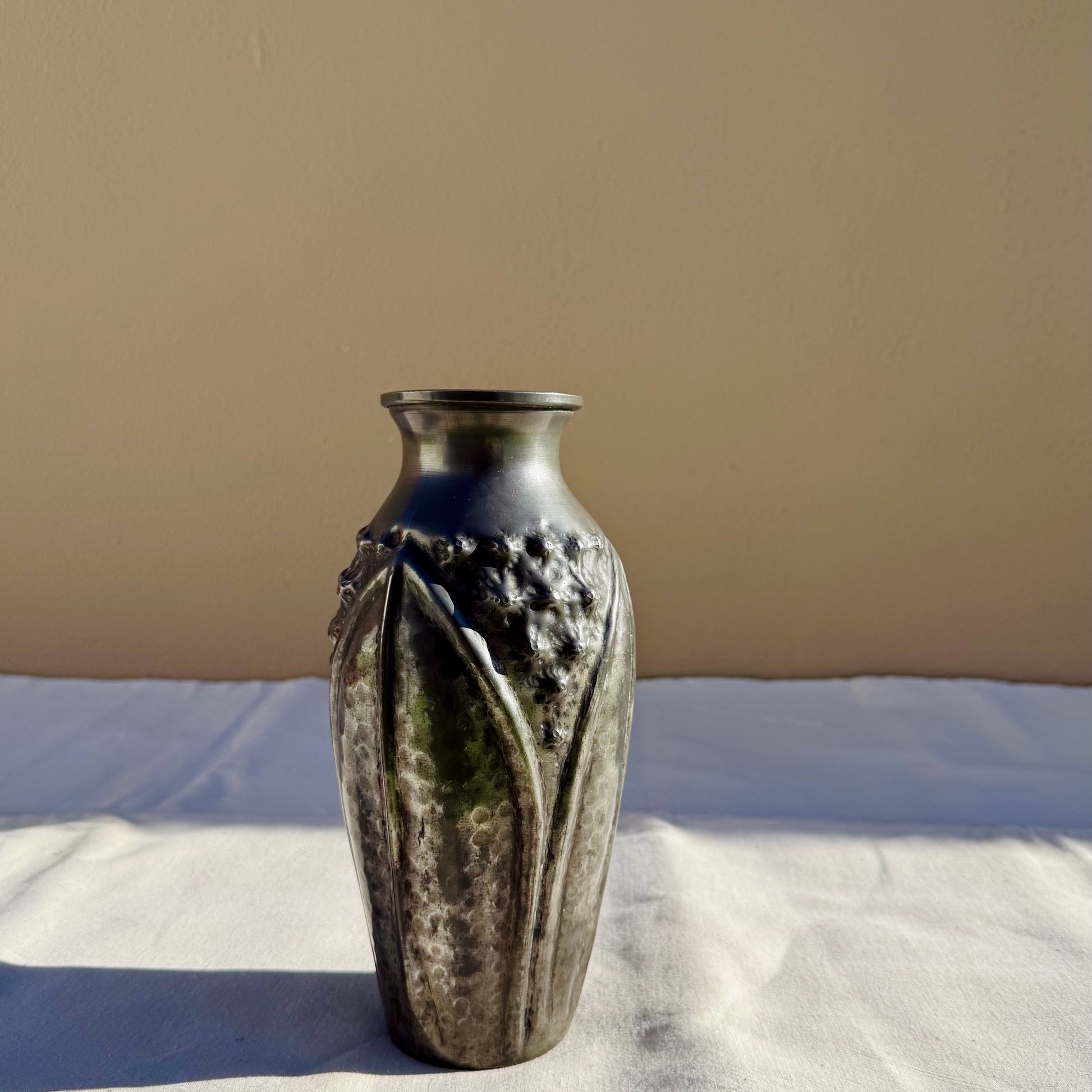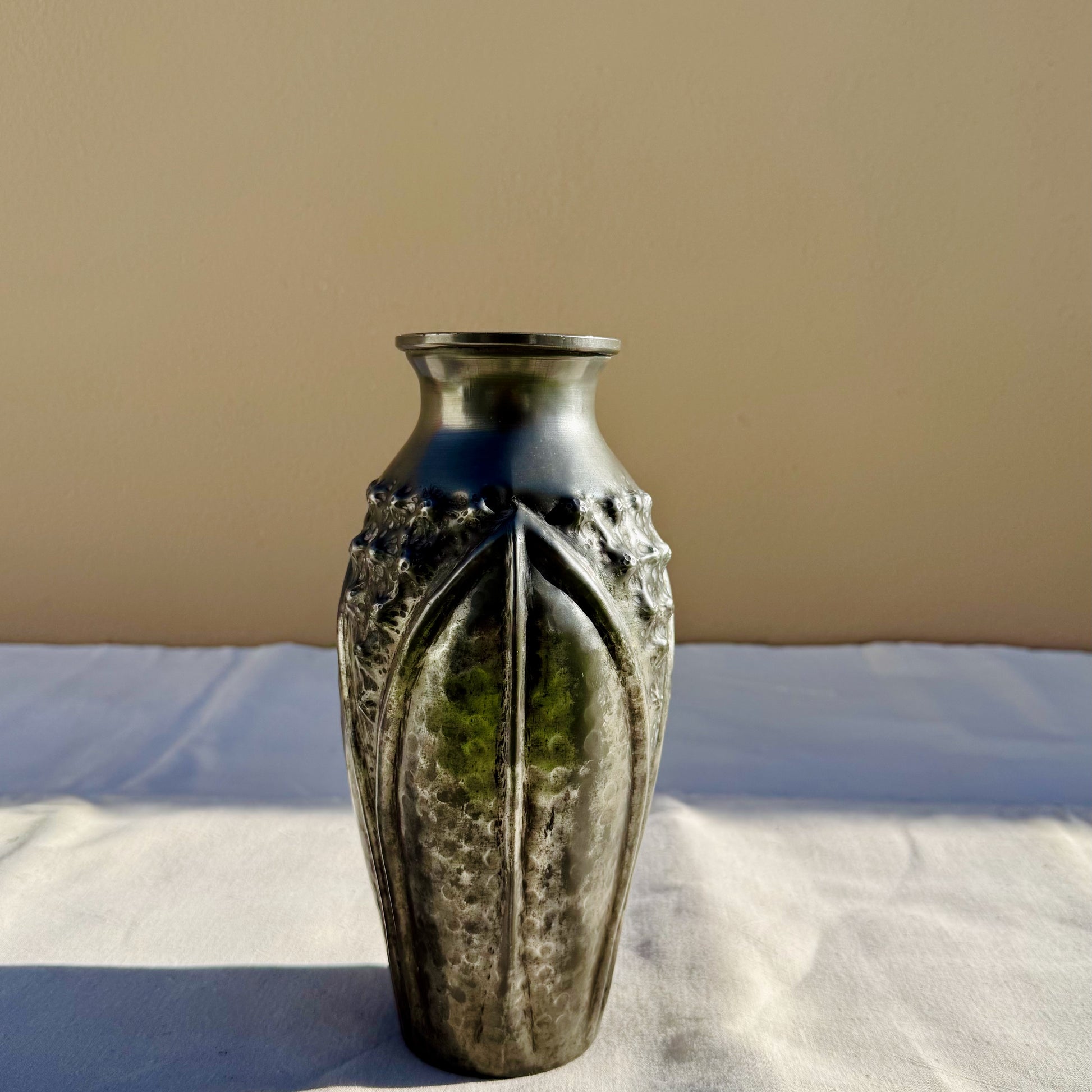 Magnifique Vase en dinanderie d'étain, à décor floral