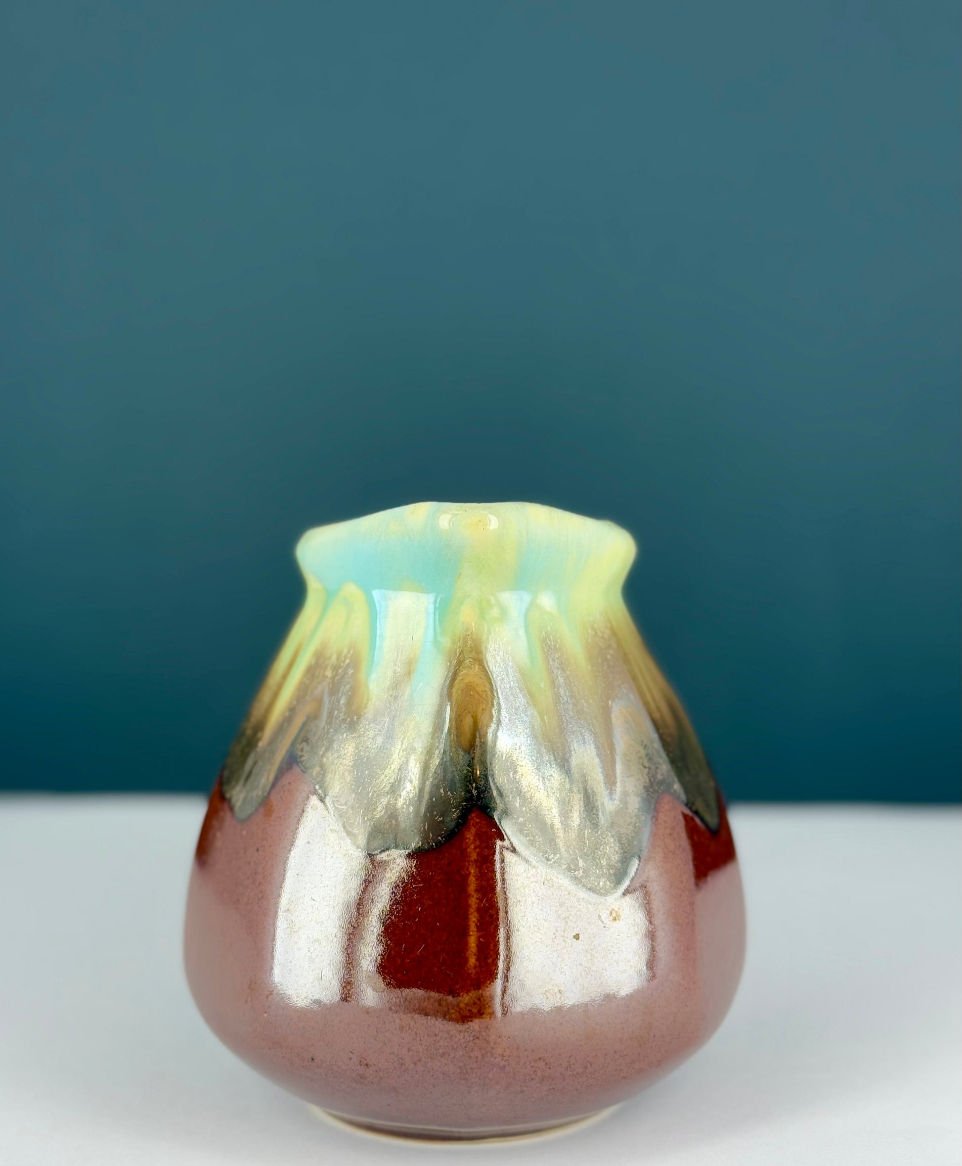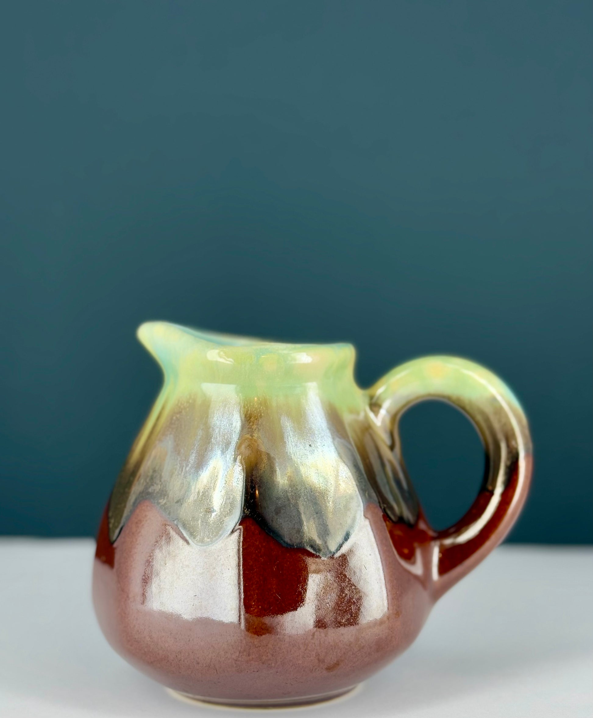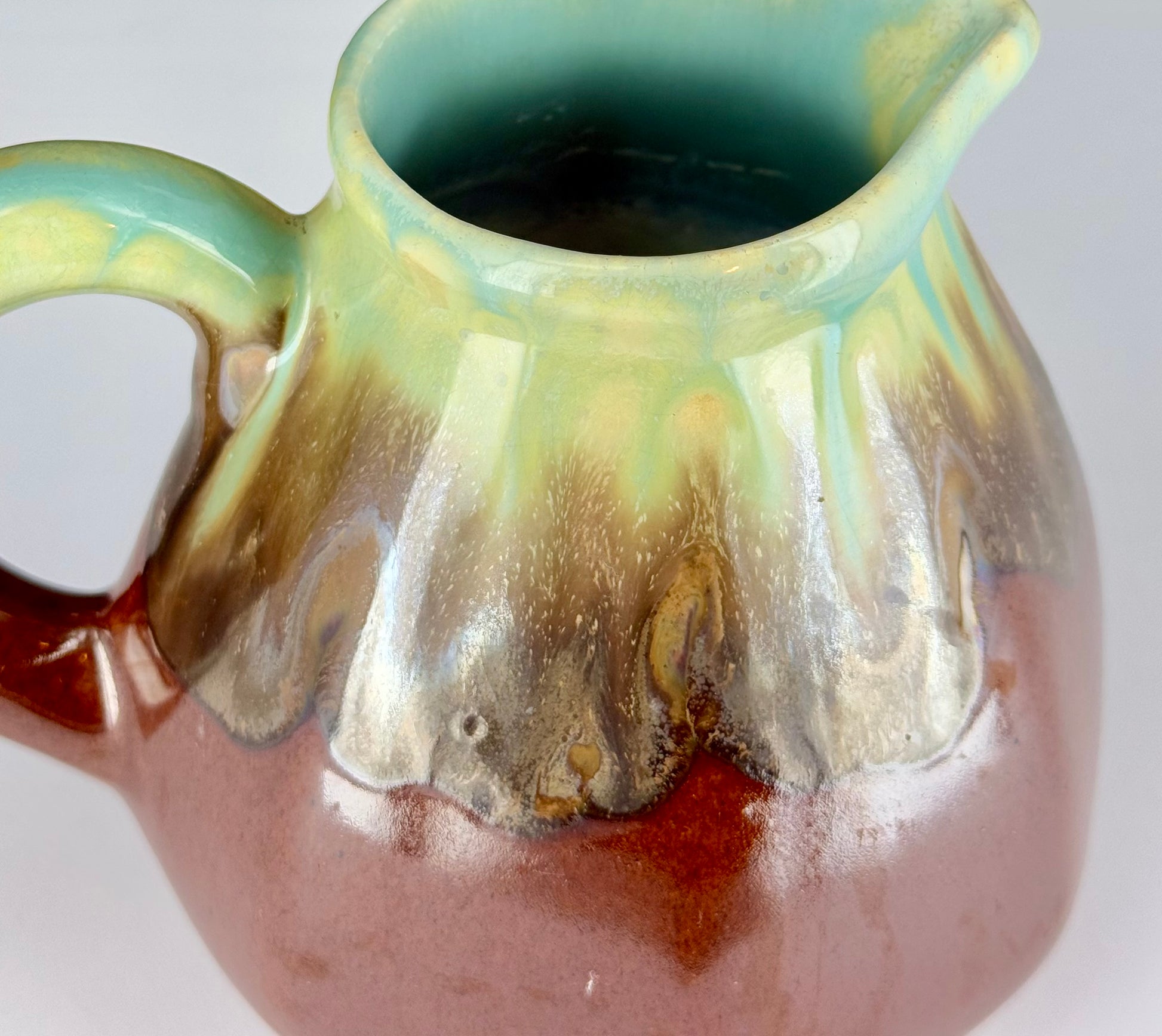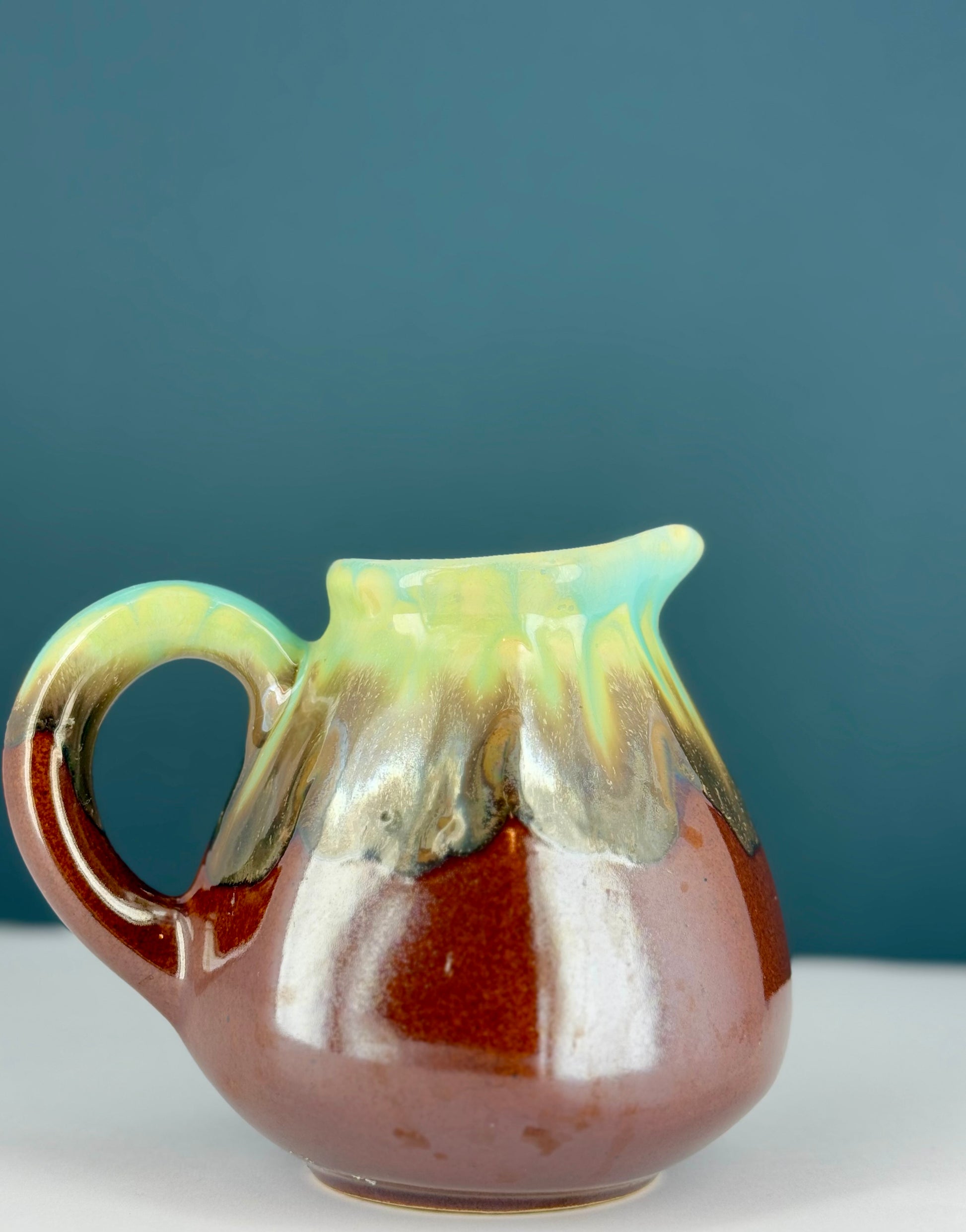 Pichet en céramique émaillée avec coulures bleu clair sur marron