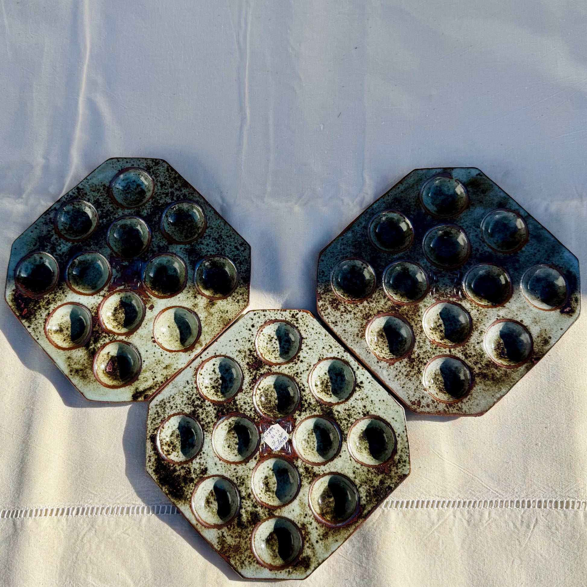 Lot de 3 jolies assiettes à Escargots en Grès du Loir, Signées Thierry et Chantal Robert