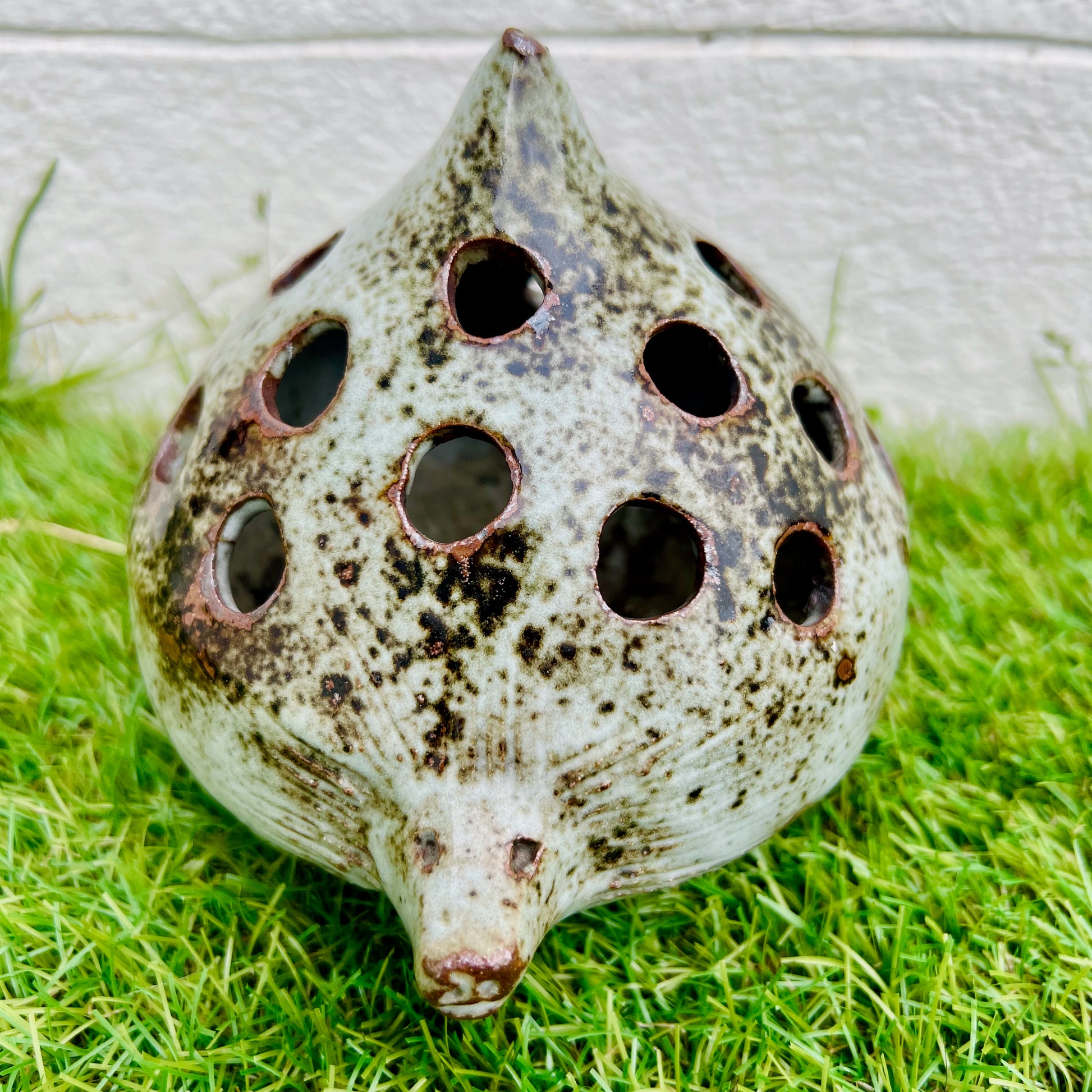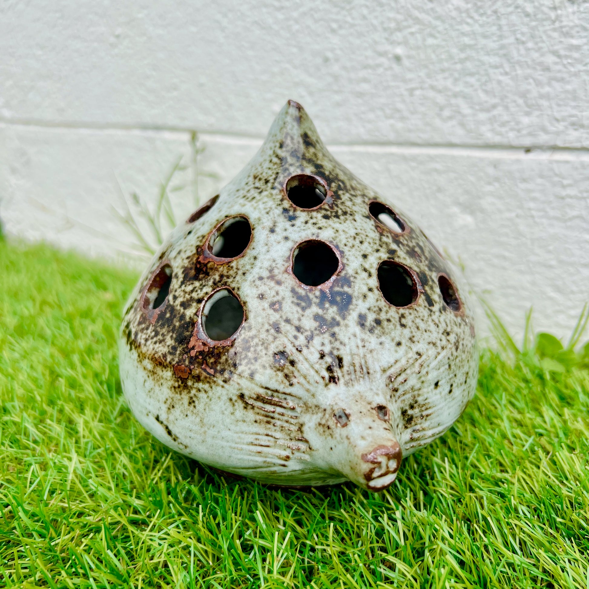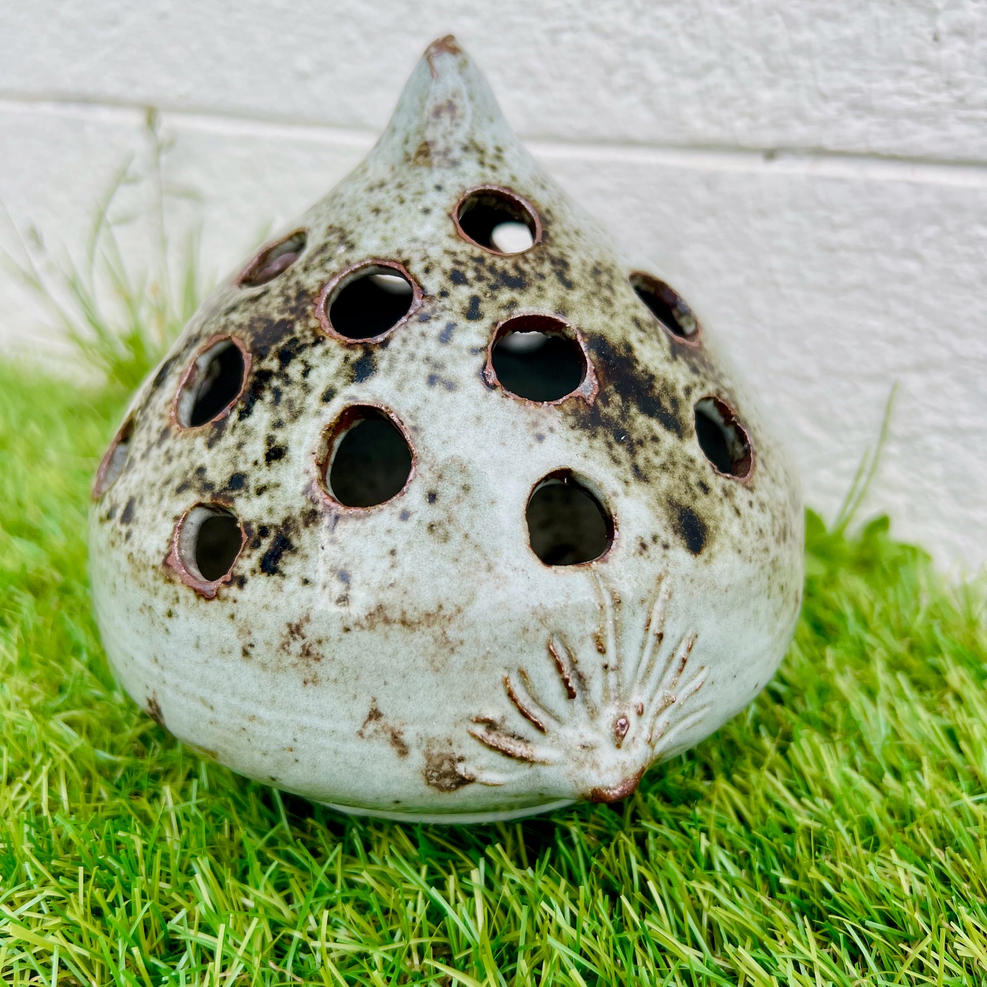 Sympathique Pique-fleurs Hérisson en grès émaillé dans les tons gris et vert