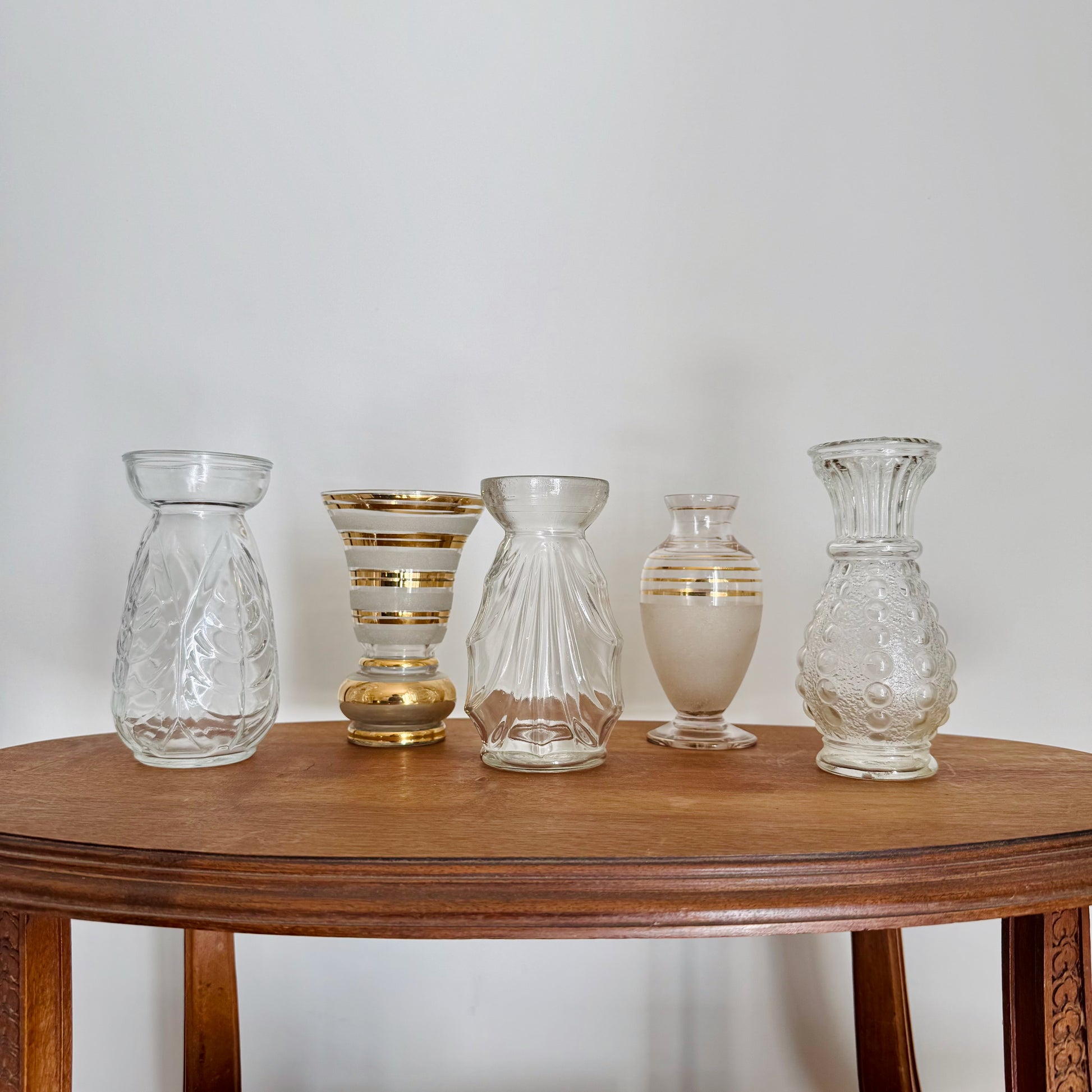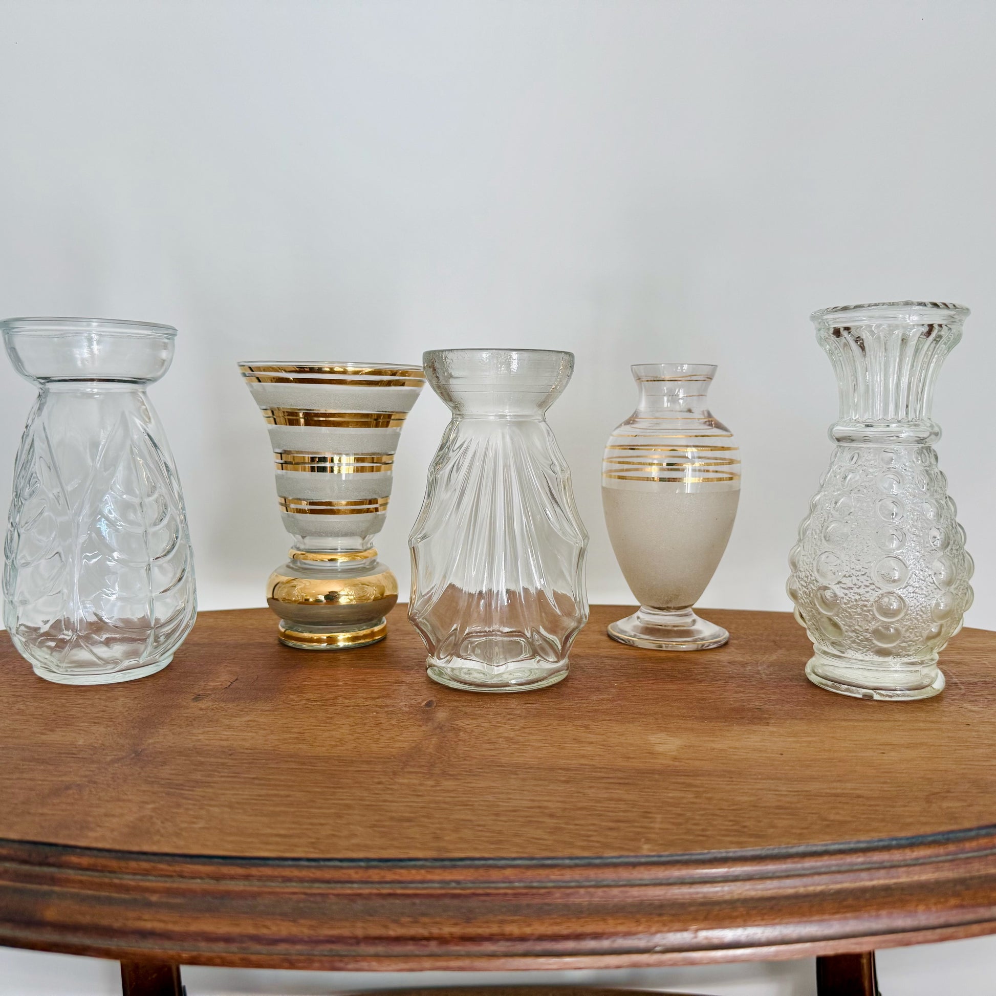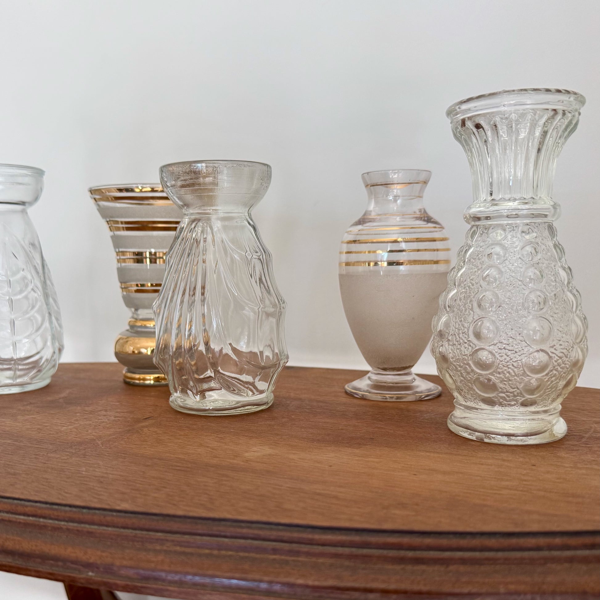 Jolis Vases à Jacinthe en verre pressé moulé transparent et doré