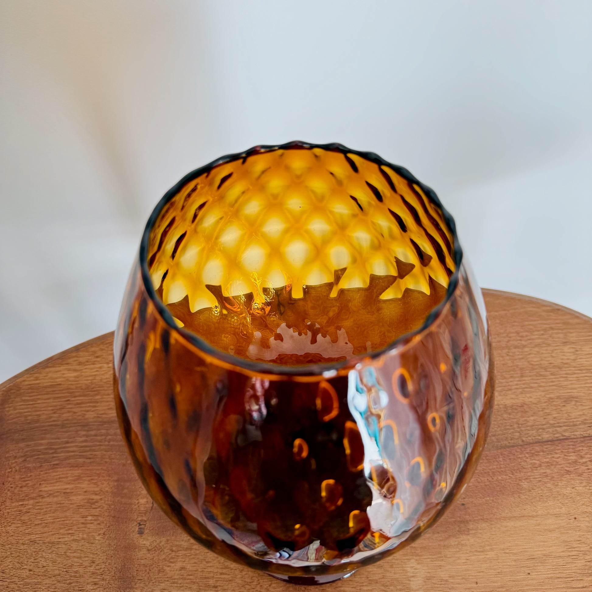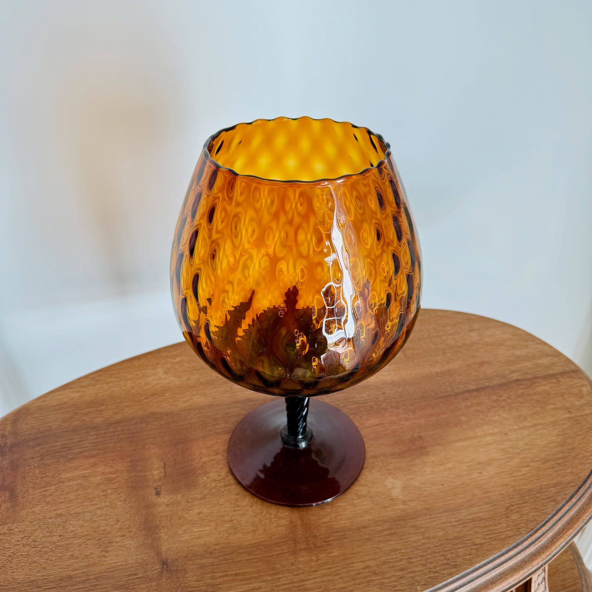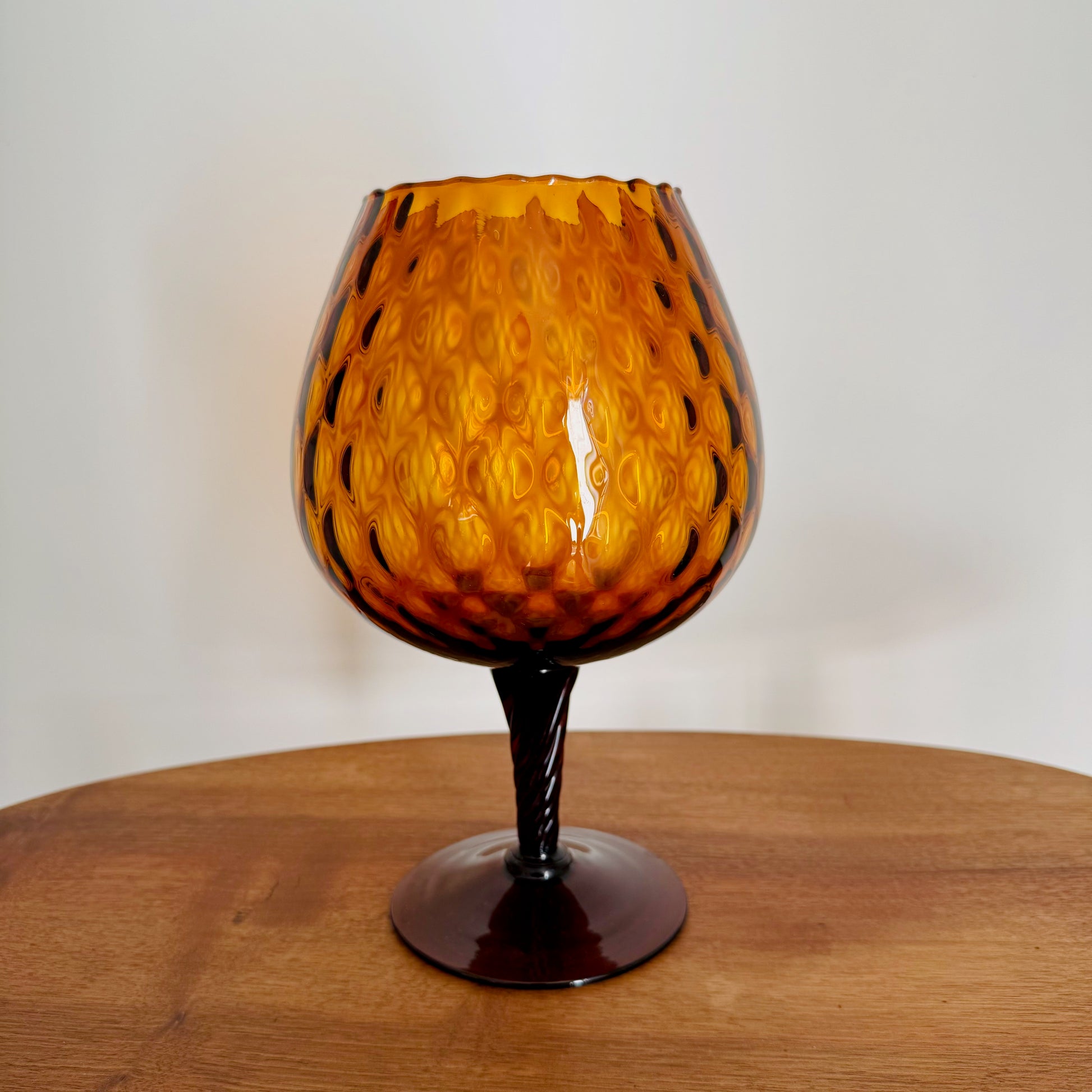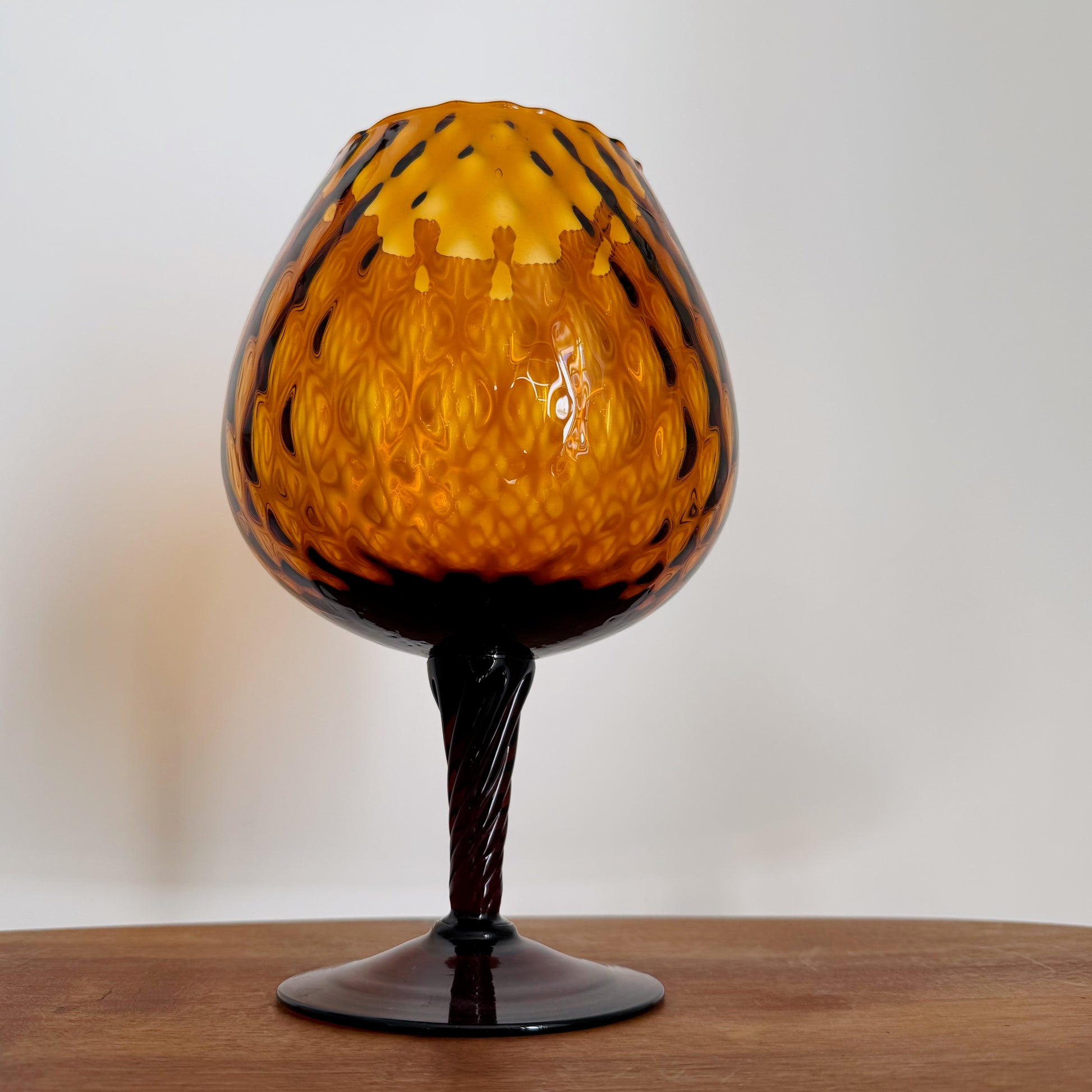 Vase sur piédouche en verre ambré à pied torsadé