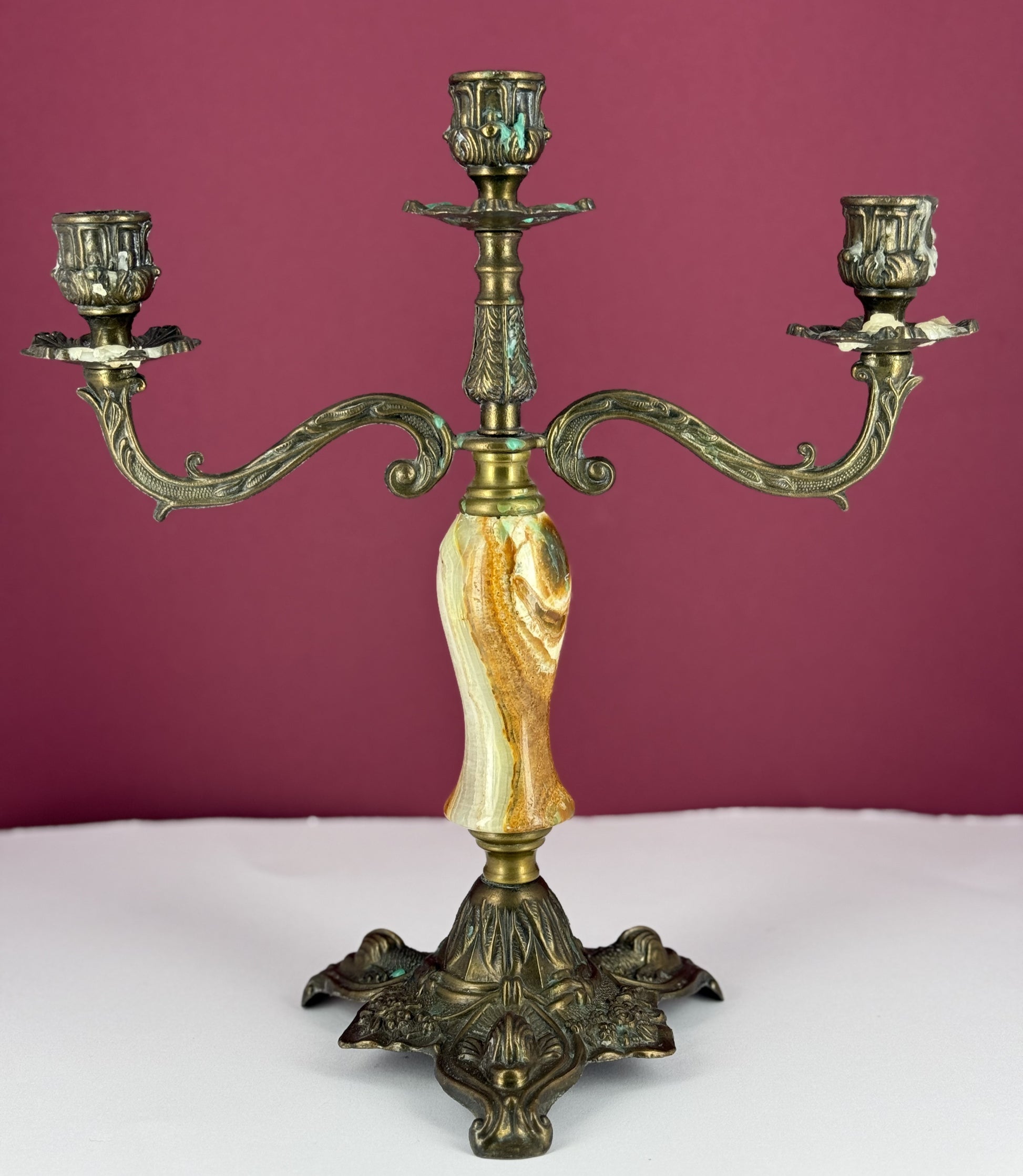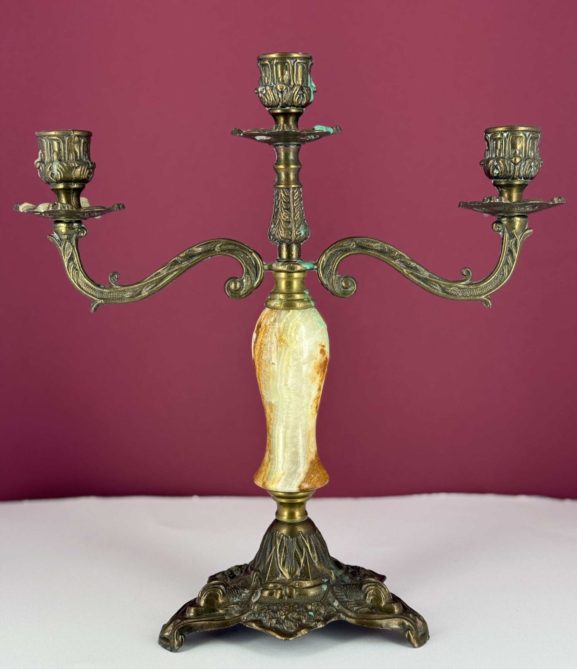 Chandelier à 3 branches en bronze et onyx