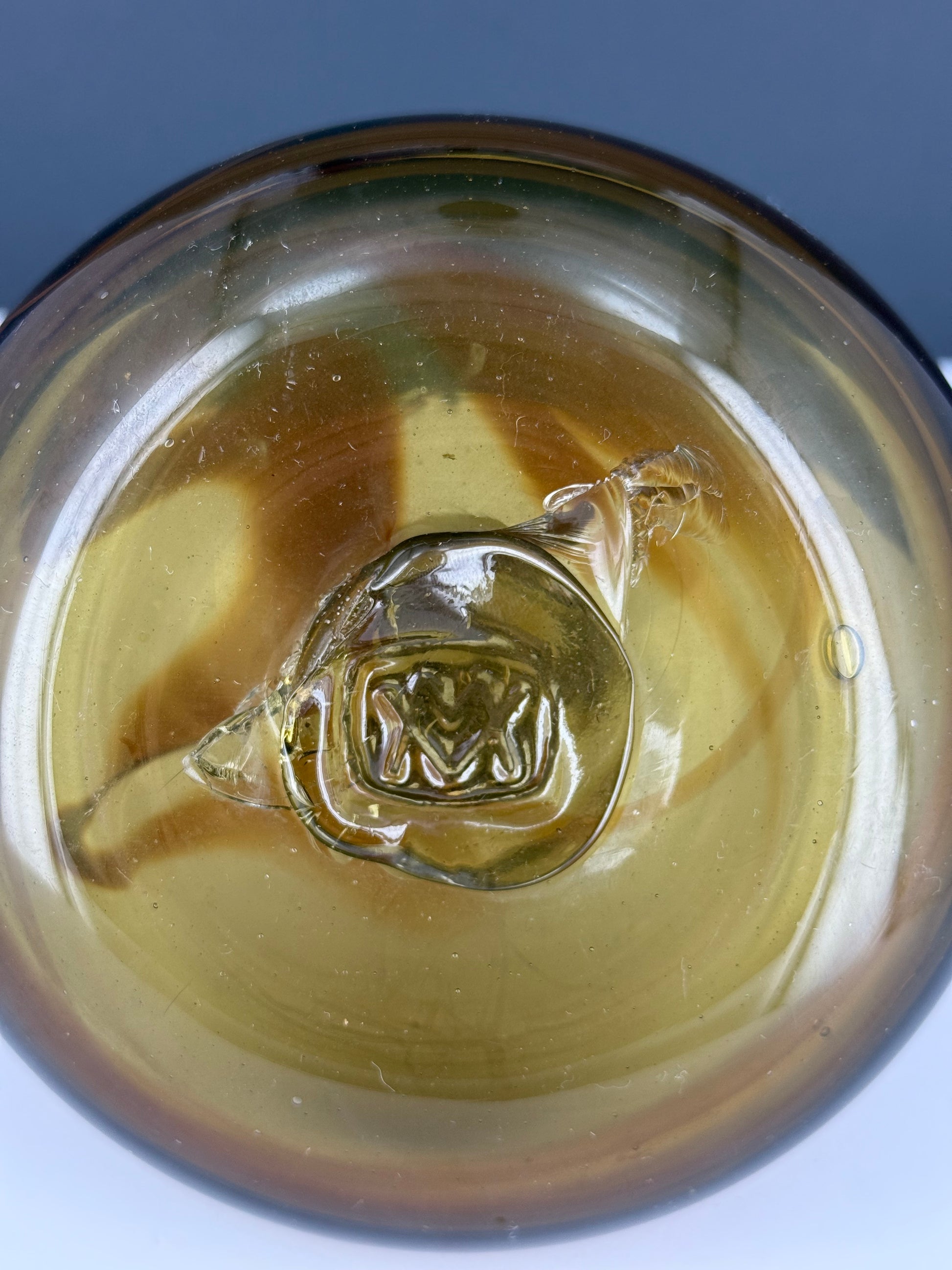 Vase Maure Vieil aux couleurs marron fumé et insert de nuances de terracotta est estampillée sous la base du sigle de la verrerie
