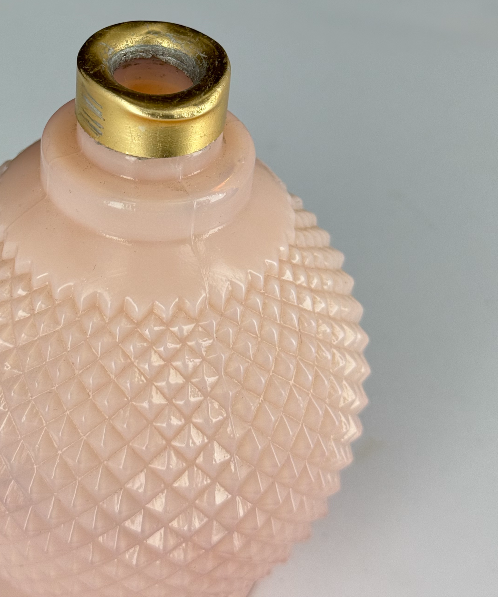 Petite Opaline de foire rose en forme de boule à picots, à détourner en vase ou pot à bâtonnets de parfum