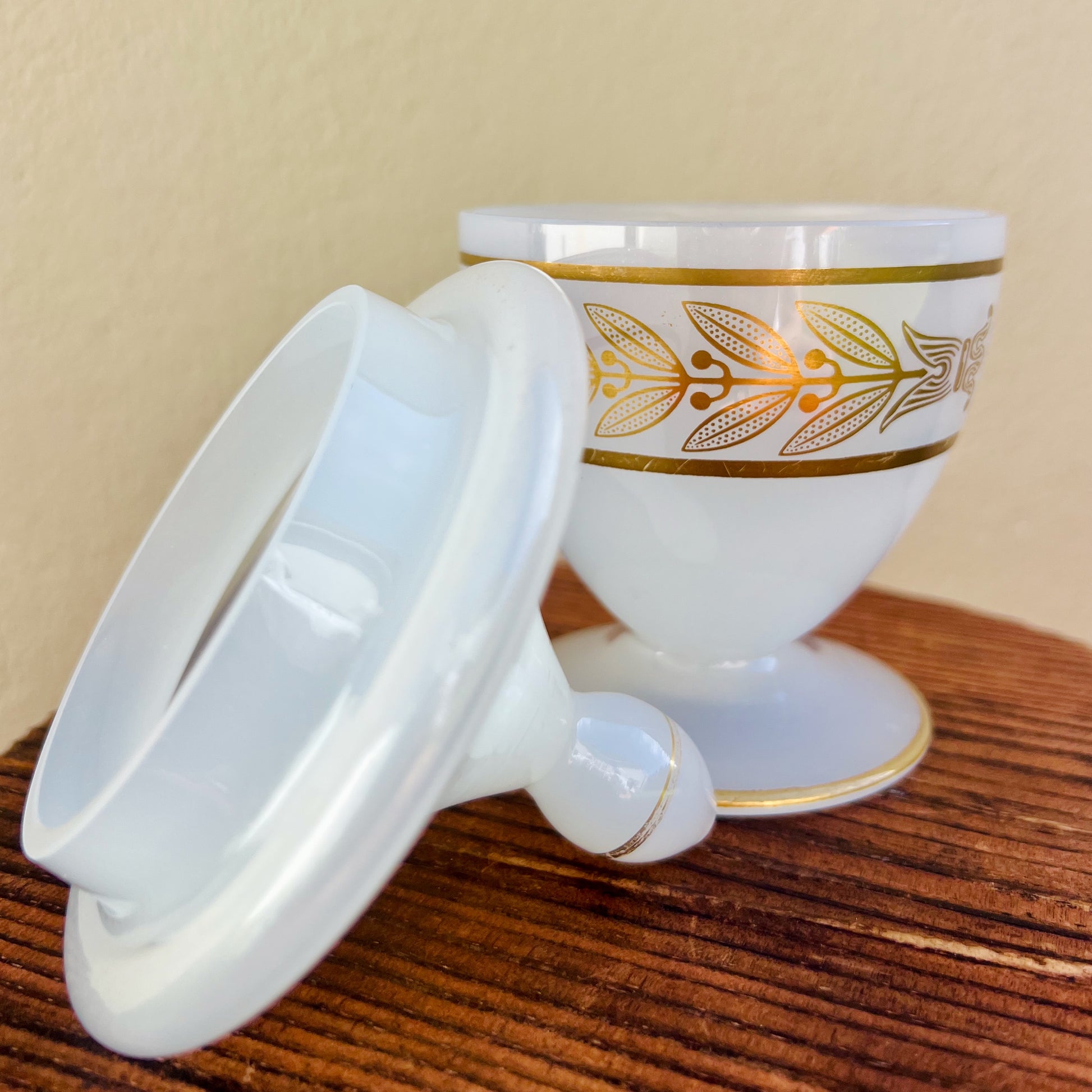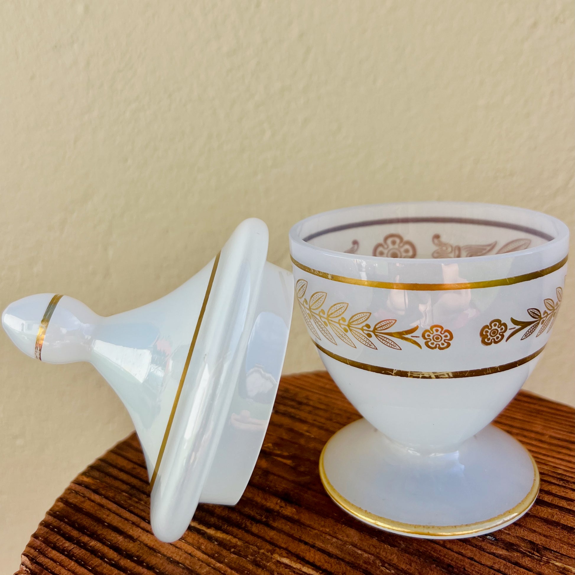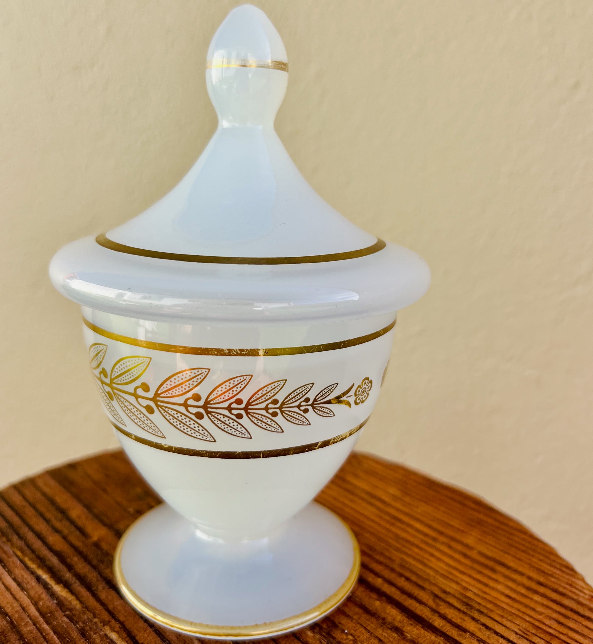 Jolie bonbonnière en Opaline de Lorraine blanche à décor doré