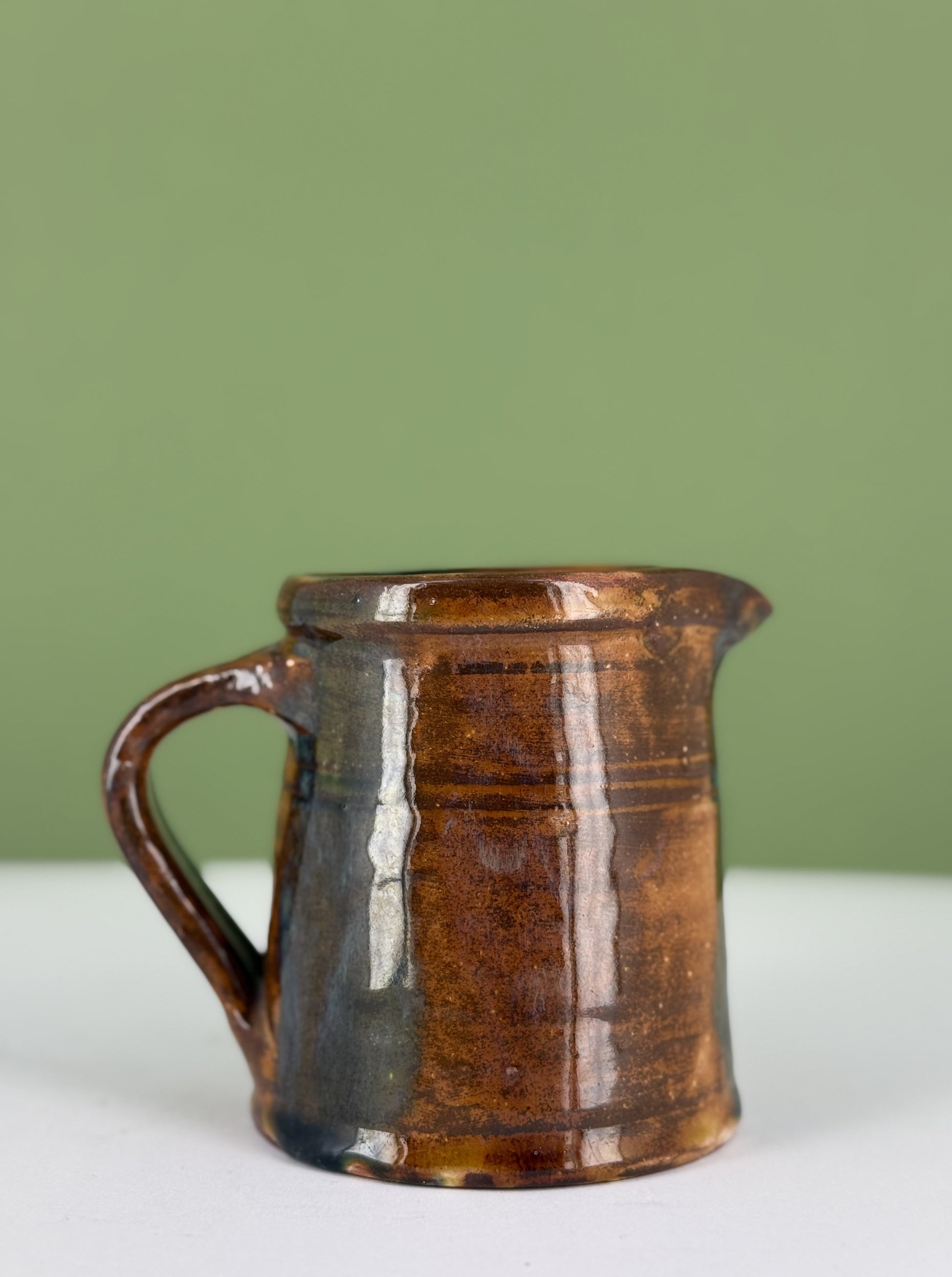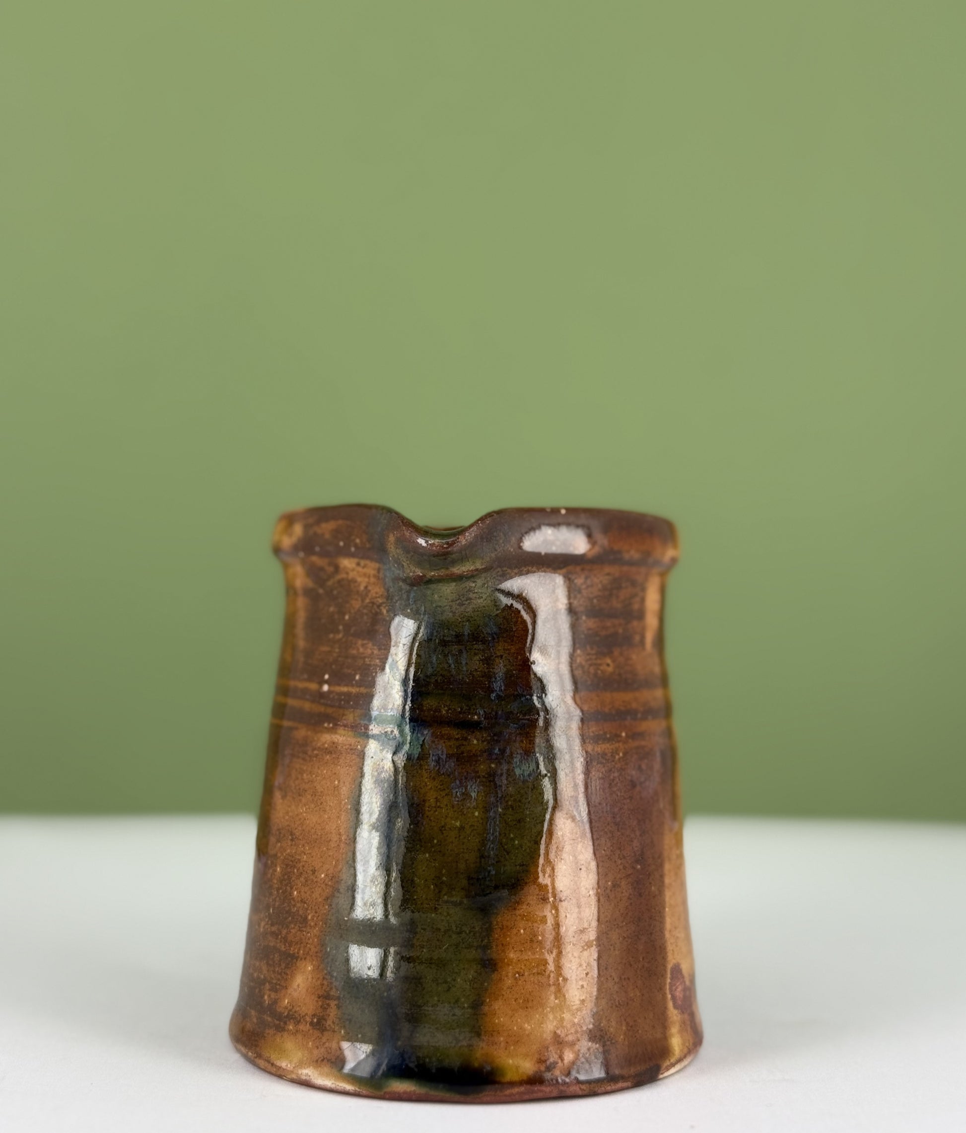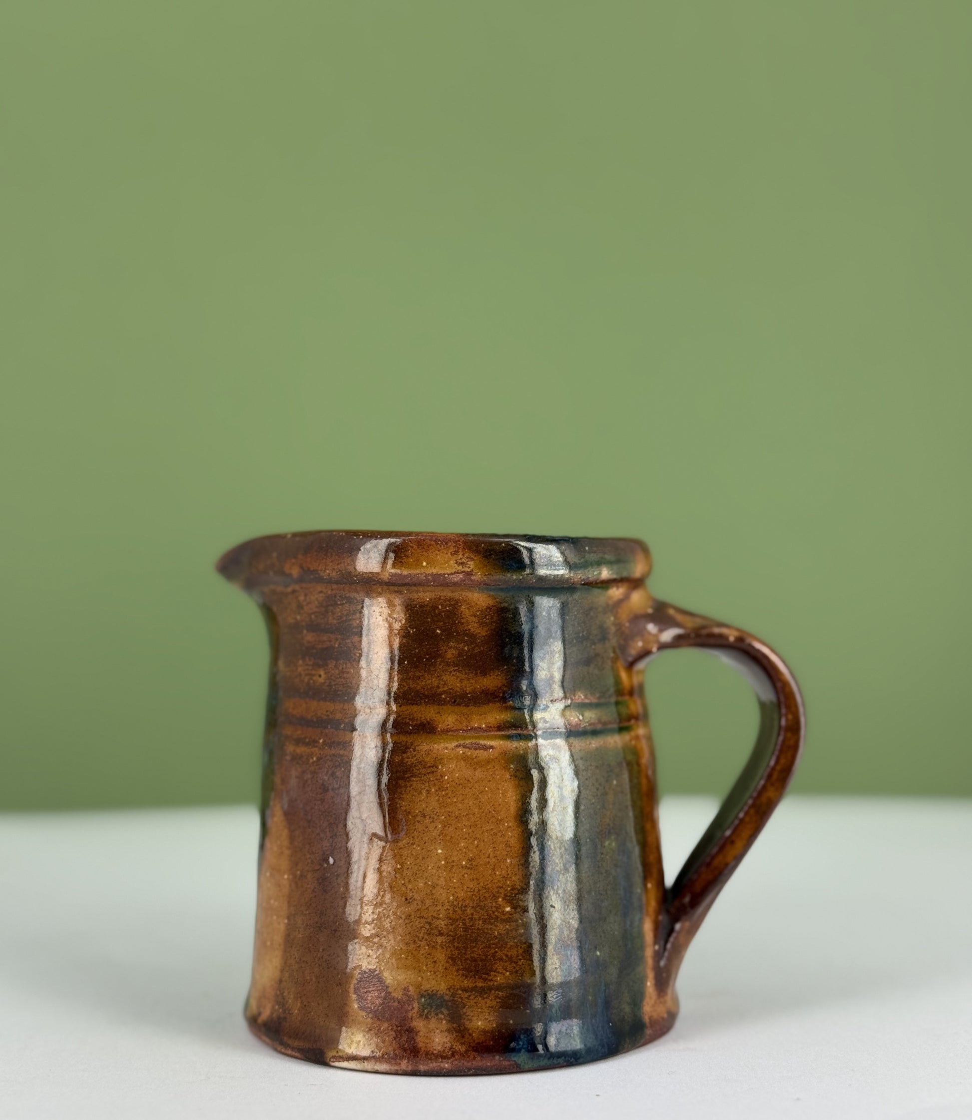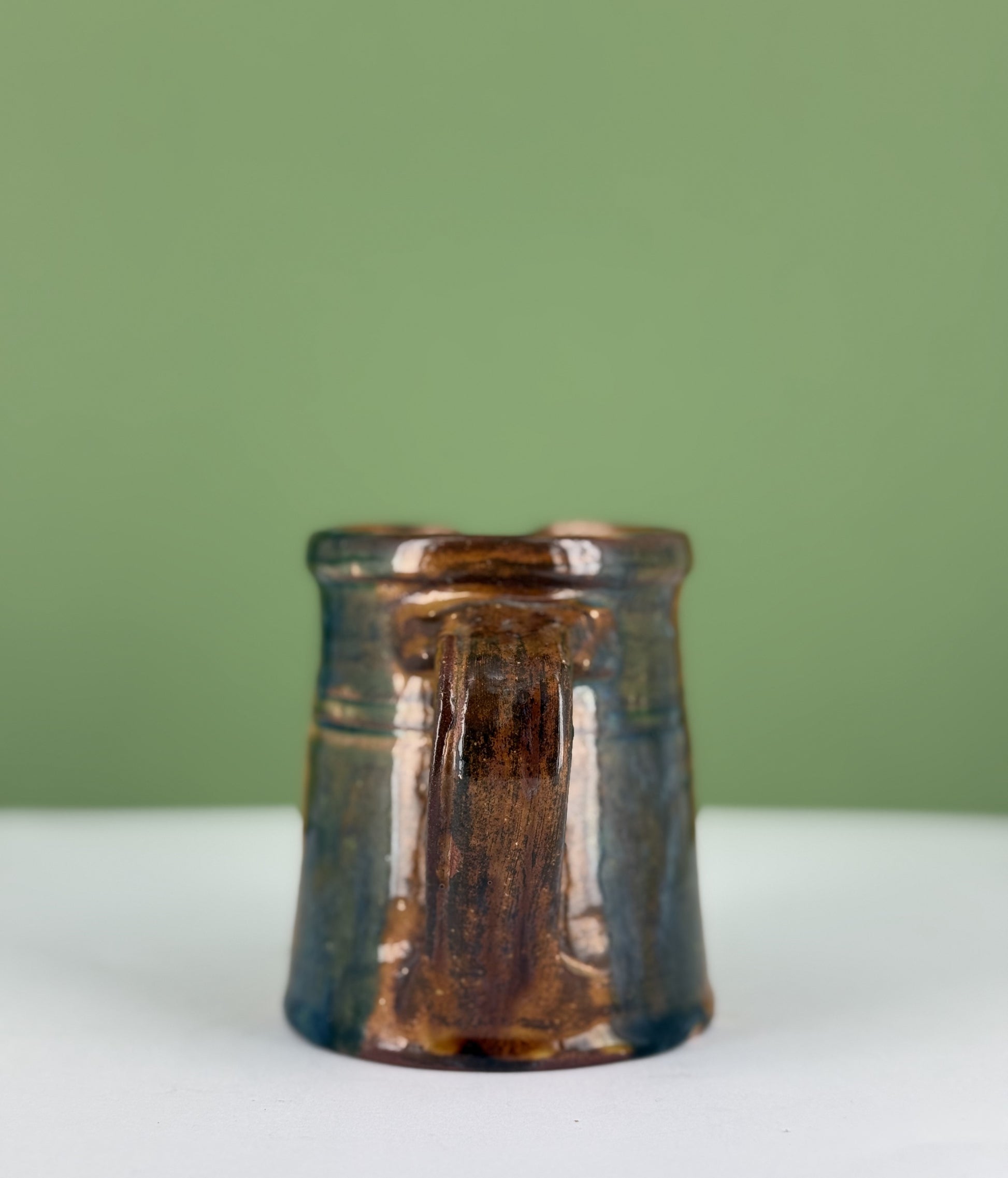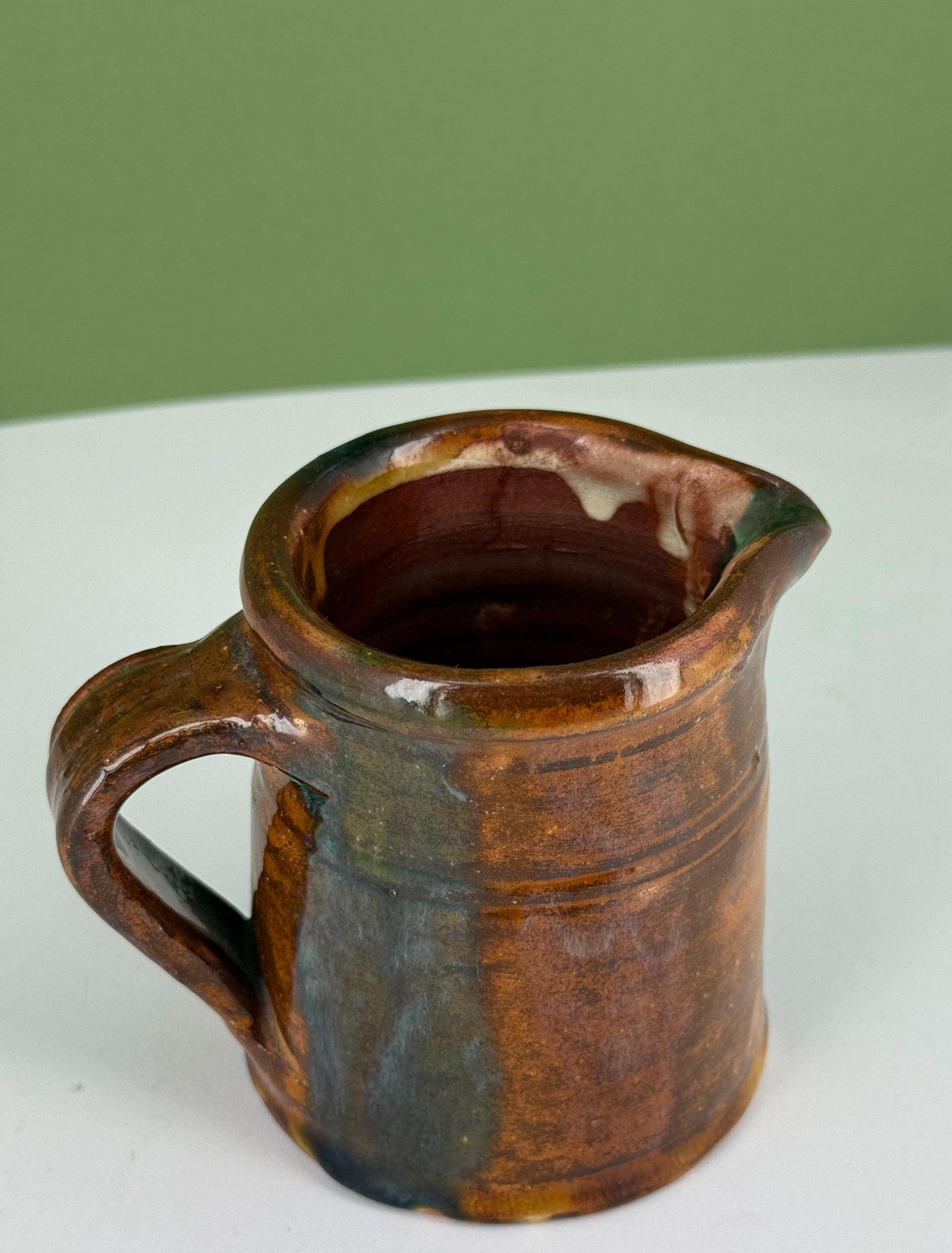 Pichet brutaliste émaillé à coulures vertes et bleues