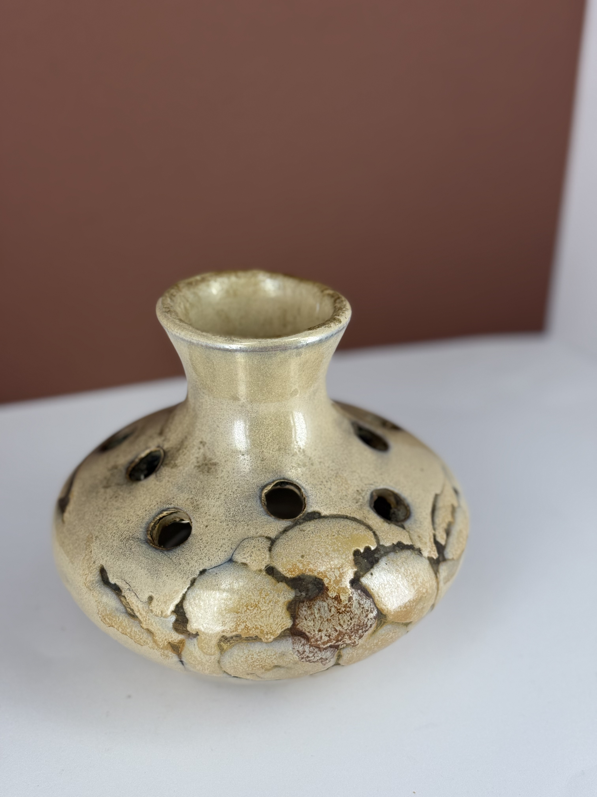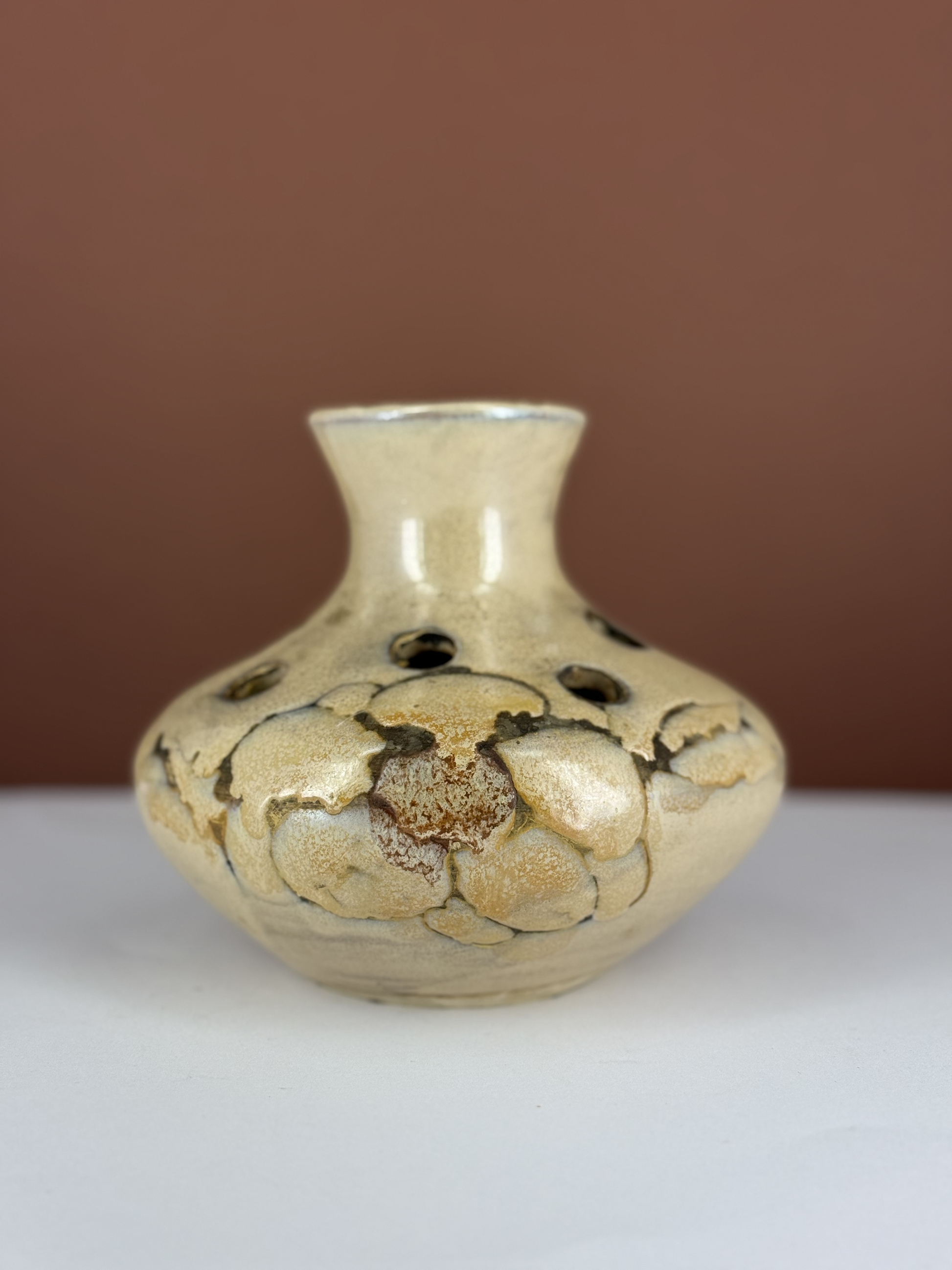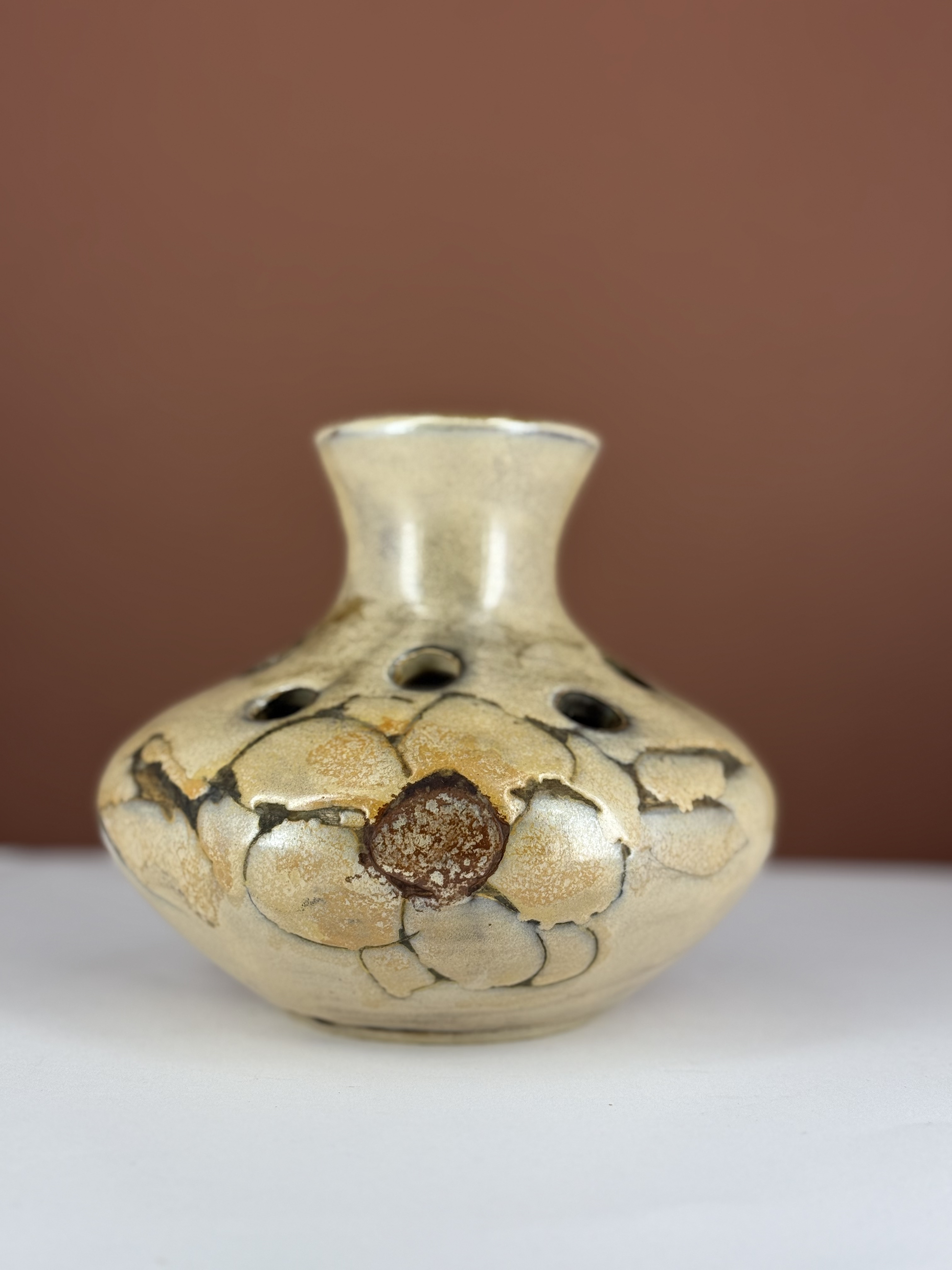 Pique-fleurs en céramique émaillée à décor de fleurs