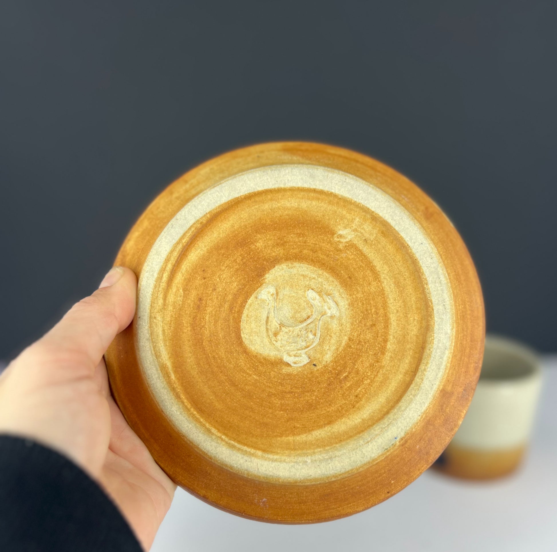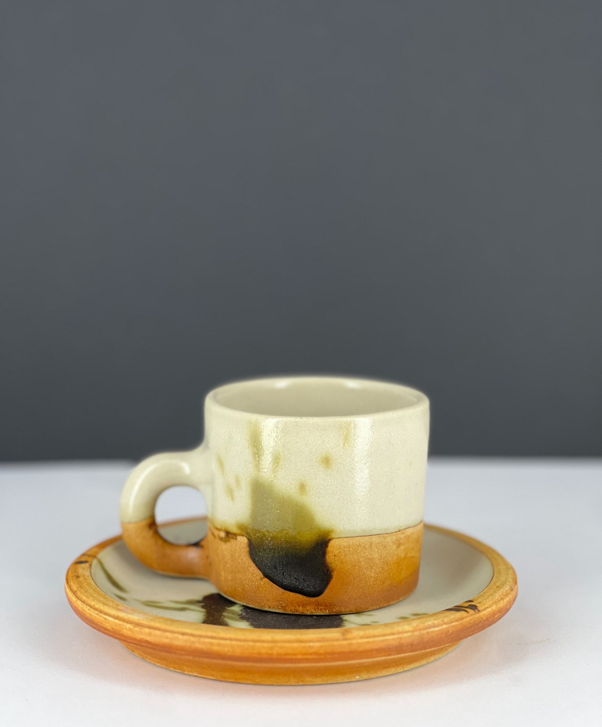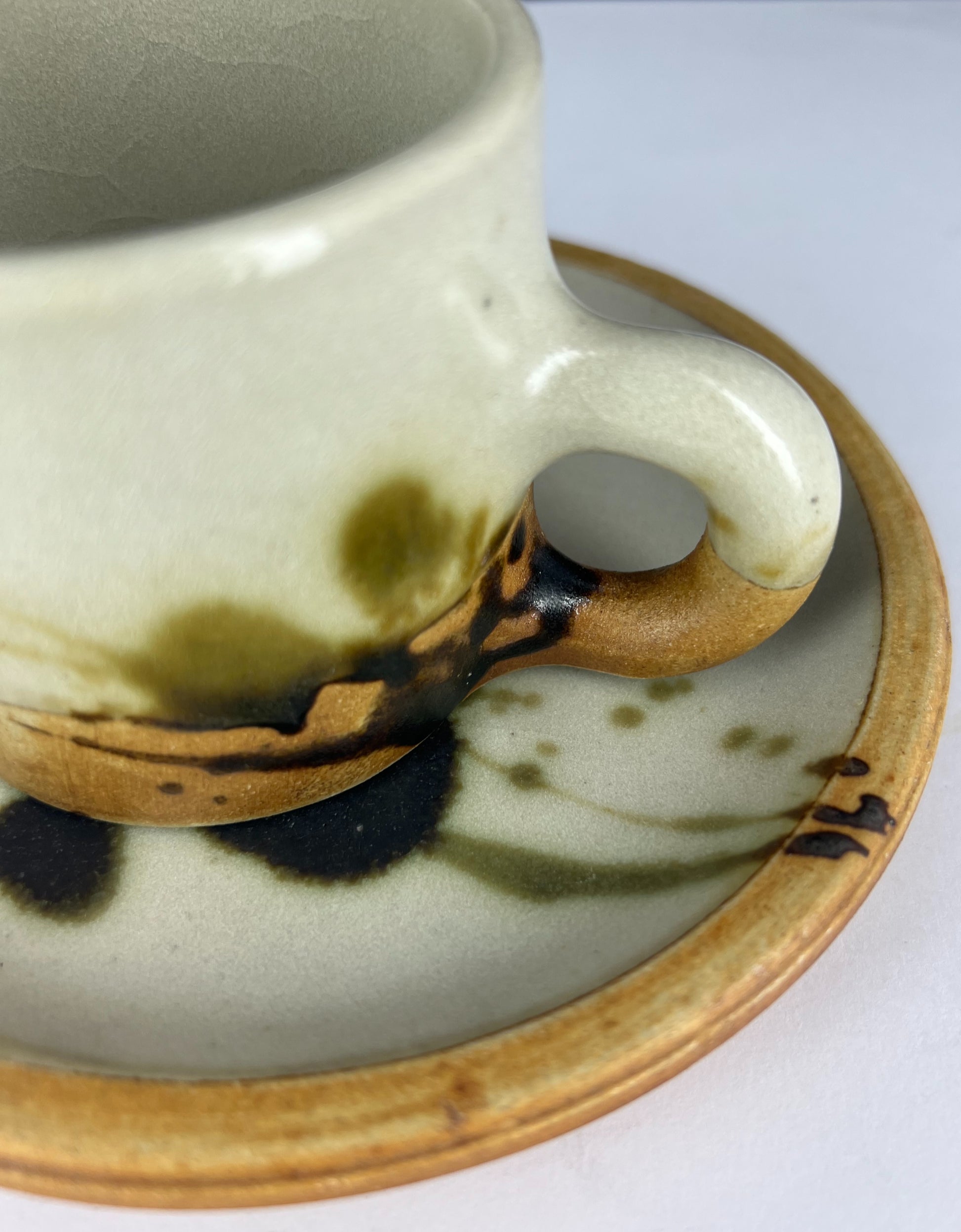 Tasse et sa sous tasse en grès émaillé de la Poterie de la Colombe