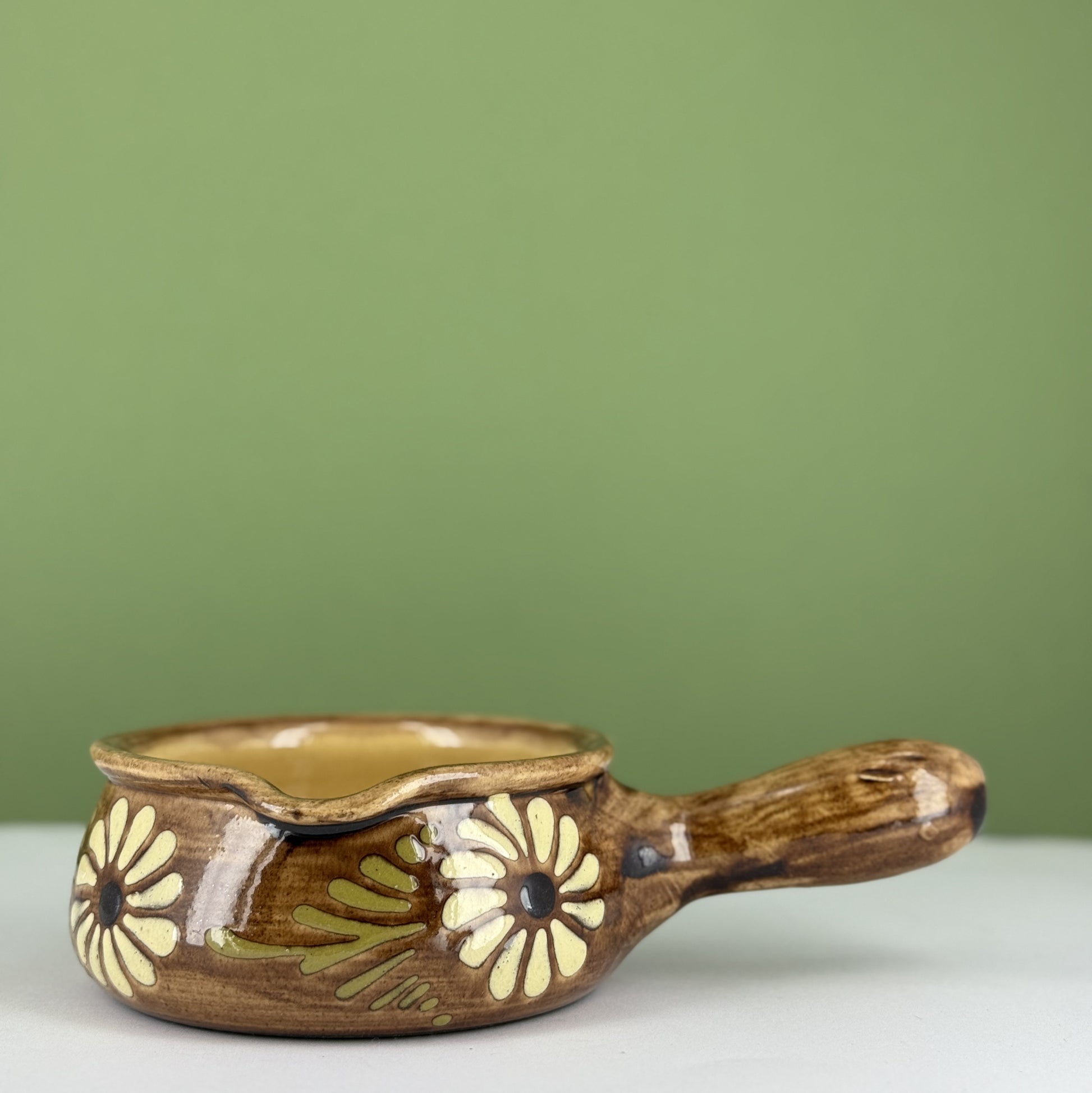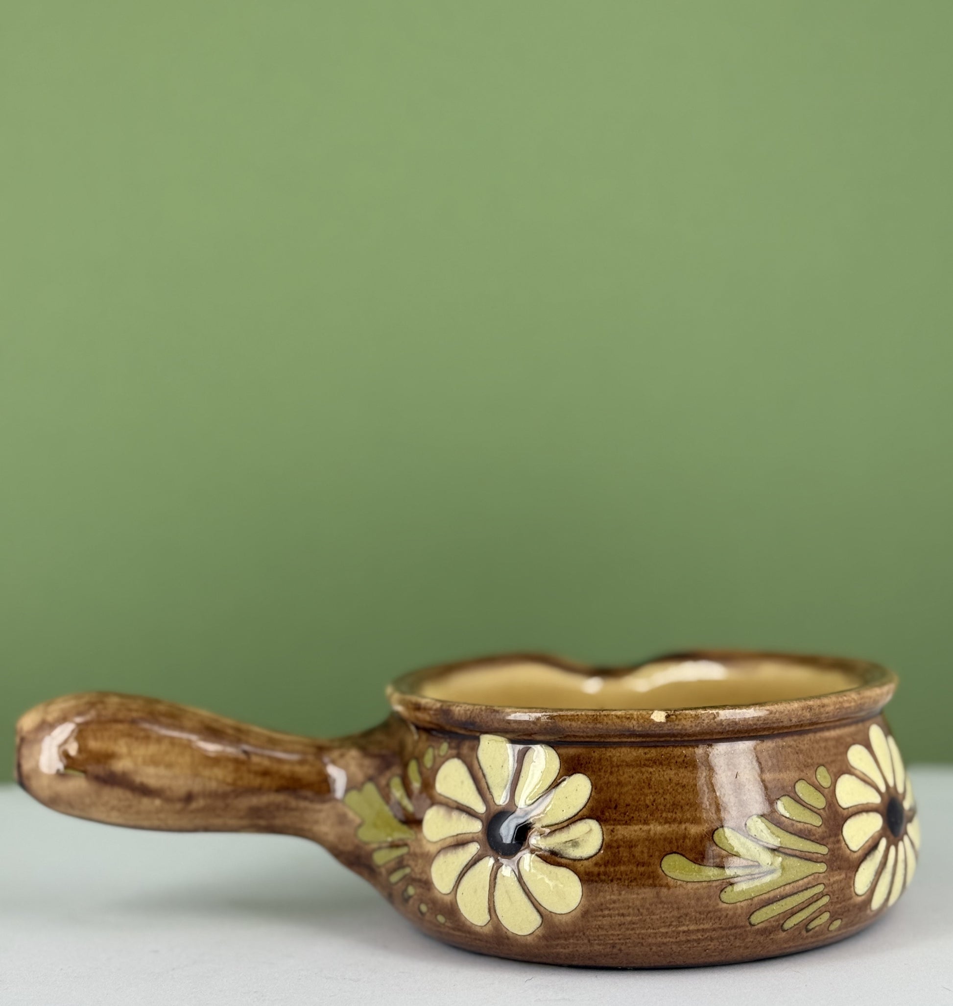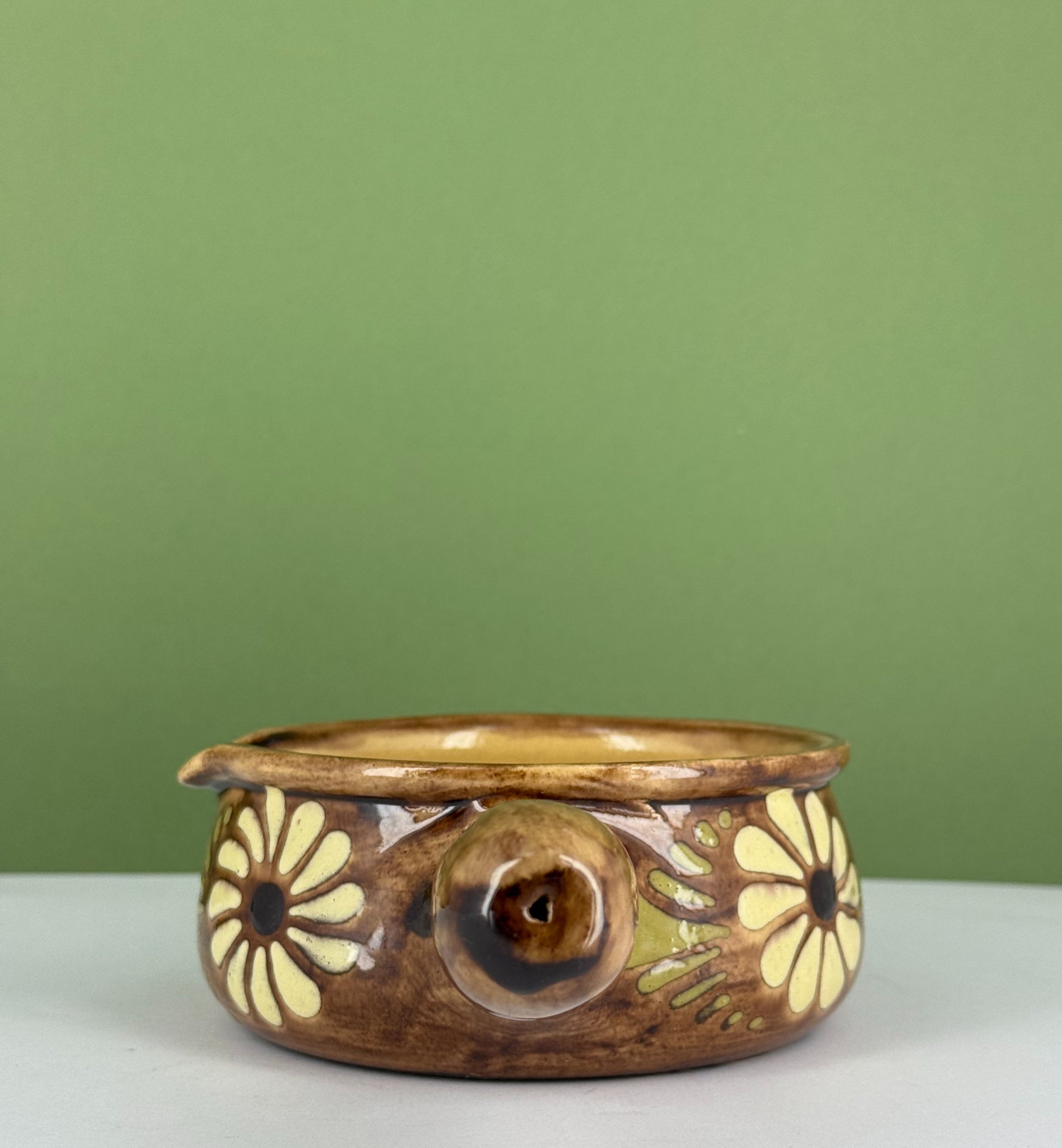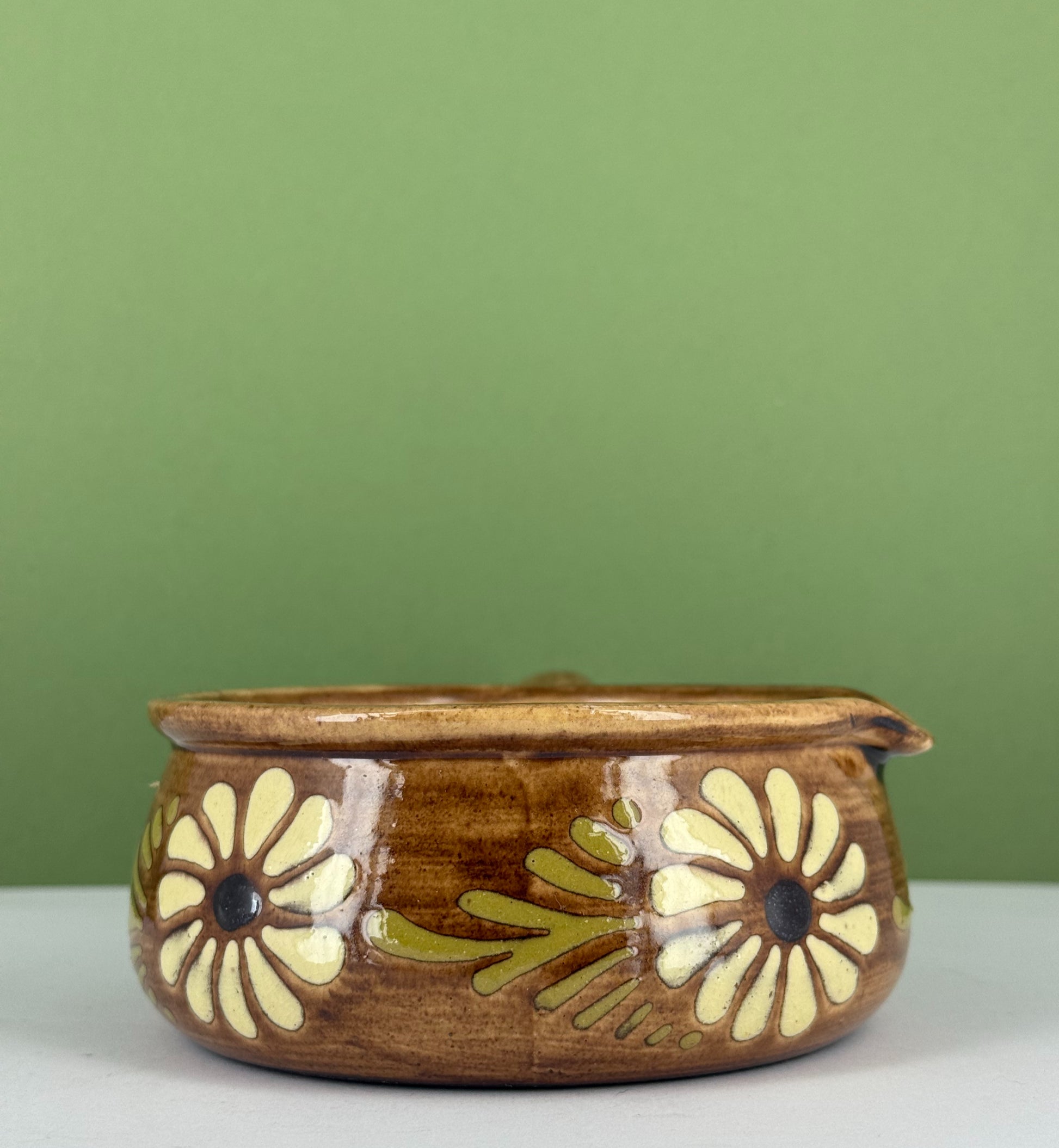 Grand caquelon en grès d'Alsace Soufflenheim à décor de fleurs